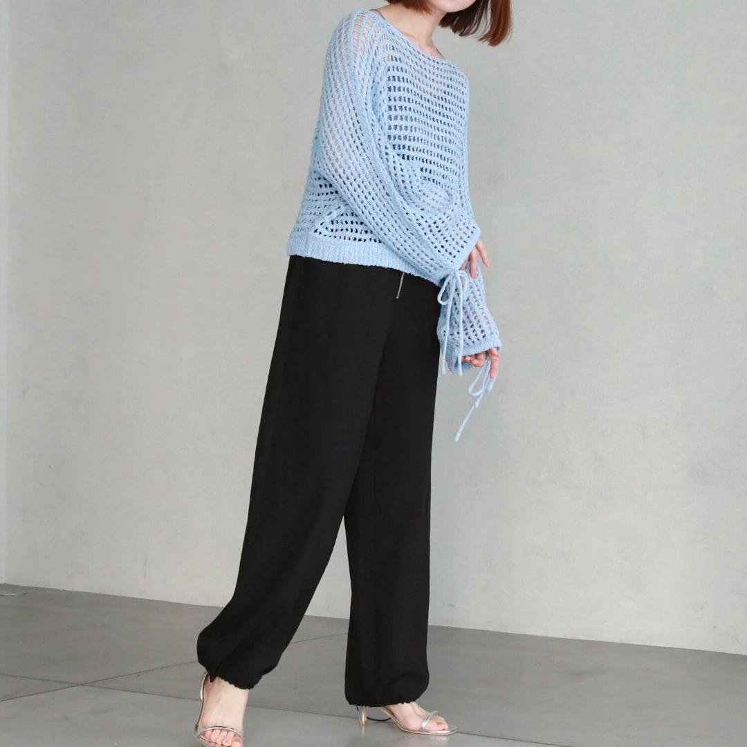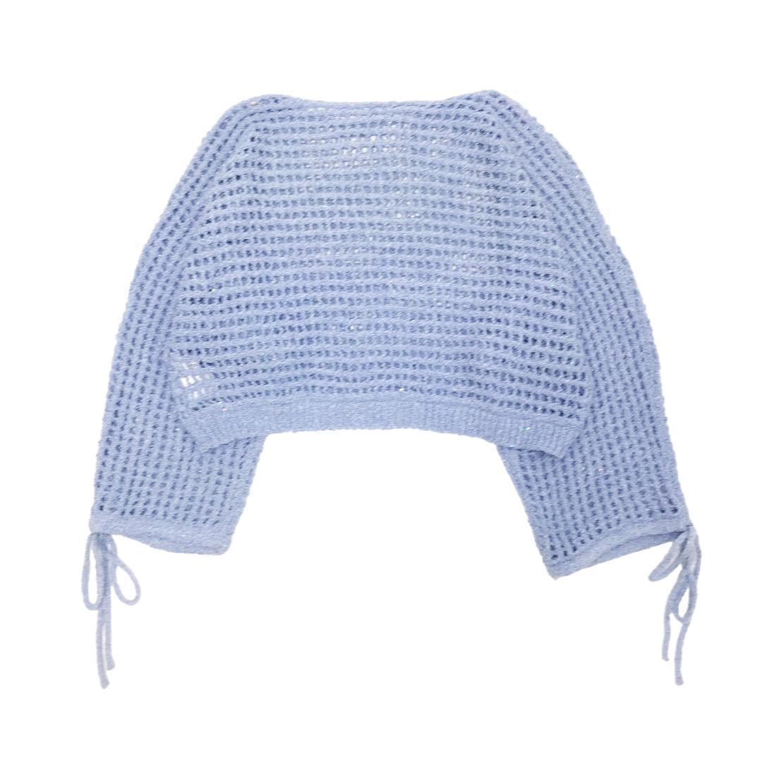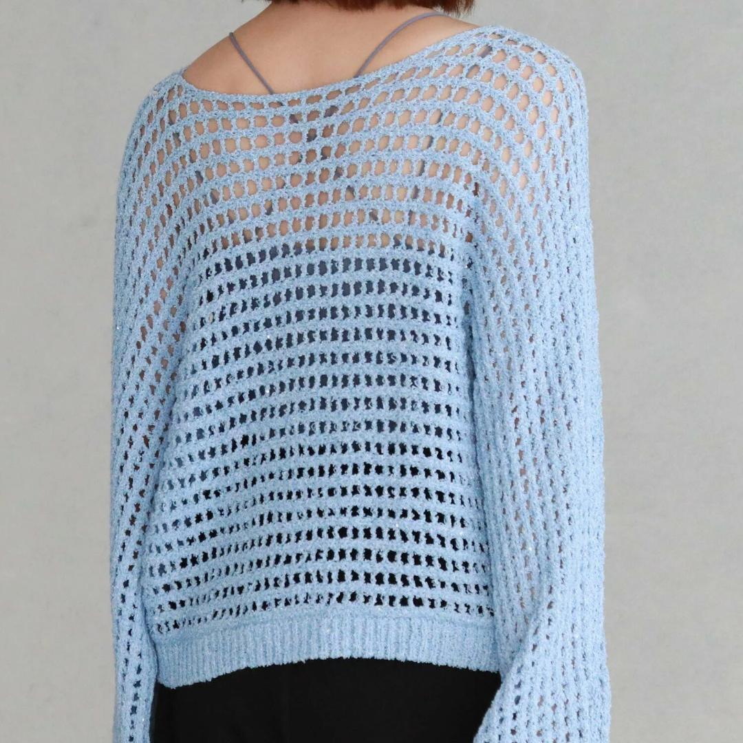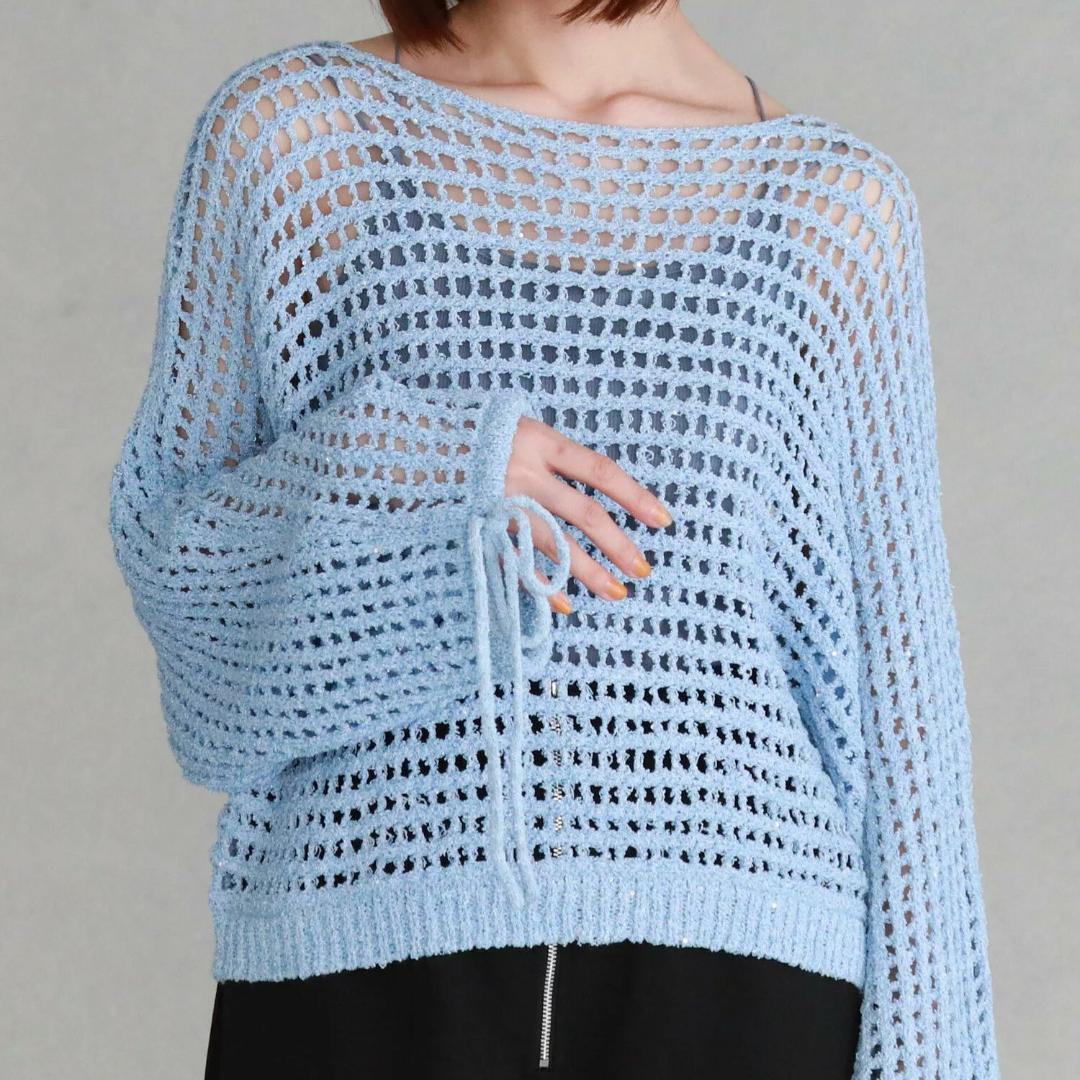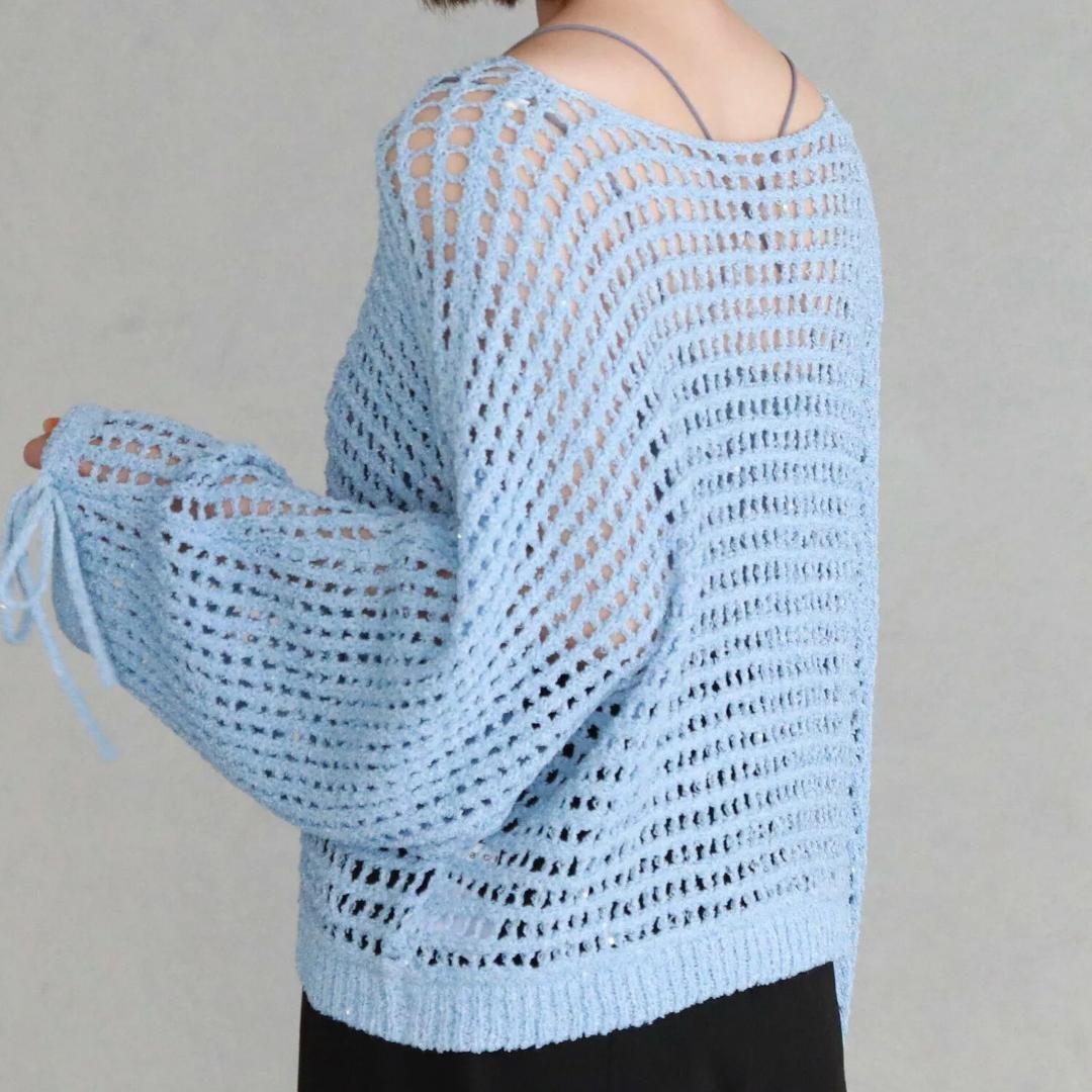 archives アルシーヴ スパンコールMIXヤーンメッシュニット ブルー