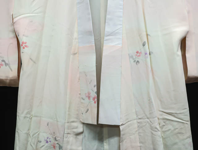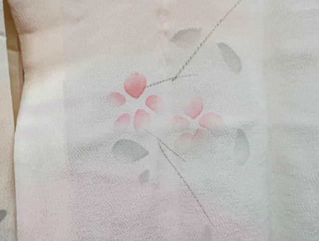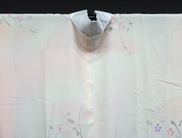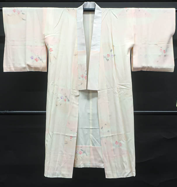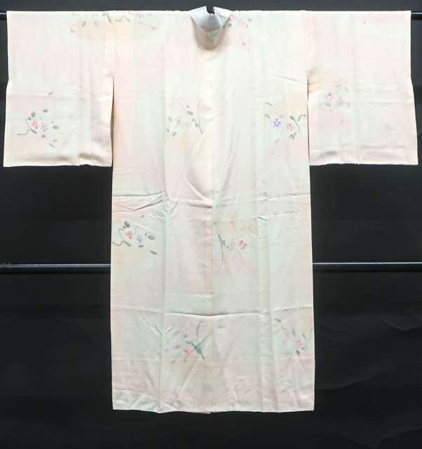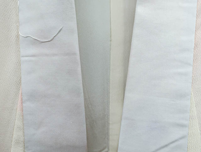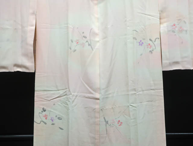 リサイクル商品のため、衿・両袖に薄シミがございますがご使用頂けると存じます。 地色はピンクです。 1枚目の画像が近いお色かと思われます。 素材は正絹です。 |