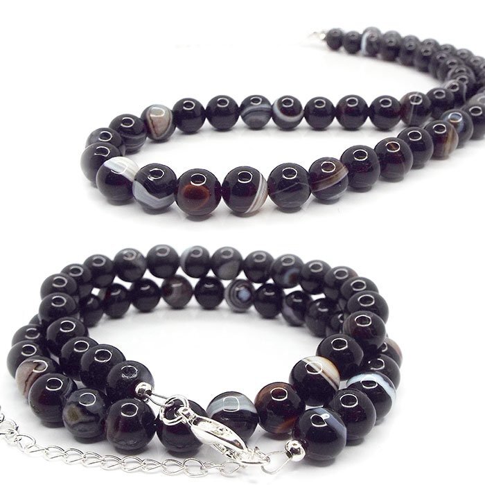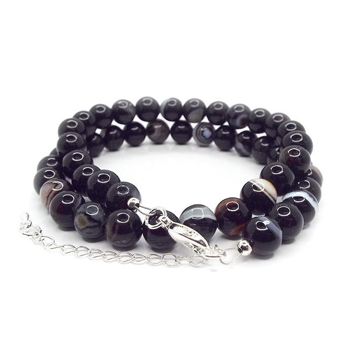 | 【STONE KITCHEN 天然石 パワーストーン】 人気の黒縞瑪瑙・バンデットアゲートです。 一粒ずつ模様が違うので見ていて飽きない石です。 自然が長い長い年月をかけて 作りだした模様にうっとりとしてしまいます。 カルセドニーが成長する過程で少しずつ 異なる成分のものが沈殿を繰り返し 縞模様が形成されたものでそれを丸く磨くことで まるで眼のような模様が浮かび上がります。 全長:約41cm~約47cm 留め具:カニカン 素材:黒縞瑪瑙 バンデットアゲート 玉サイズ:約10mm 注意事項 ※表示のサイズは必ずしも最大値・最小値のサイズのものが入っているわけではございません。 ※天然石のため同じものでも色味・模様などが異なります。 ※照明の具合で実際とは色合いが異なる場合がございます。 また、天然素材特有のクラック・内包物を有する場合がございます。予めご了承下さい。 | |||