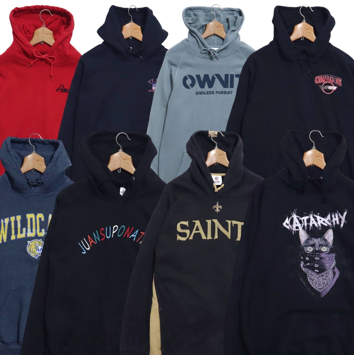 ブランドミックスならではの多彩なデザインが魅力で、ストリート系からカジュアルスタイルまで幅広い、古着らしいこなれ感を楽しめるパーカーを集めたセットです!