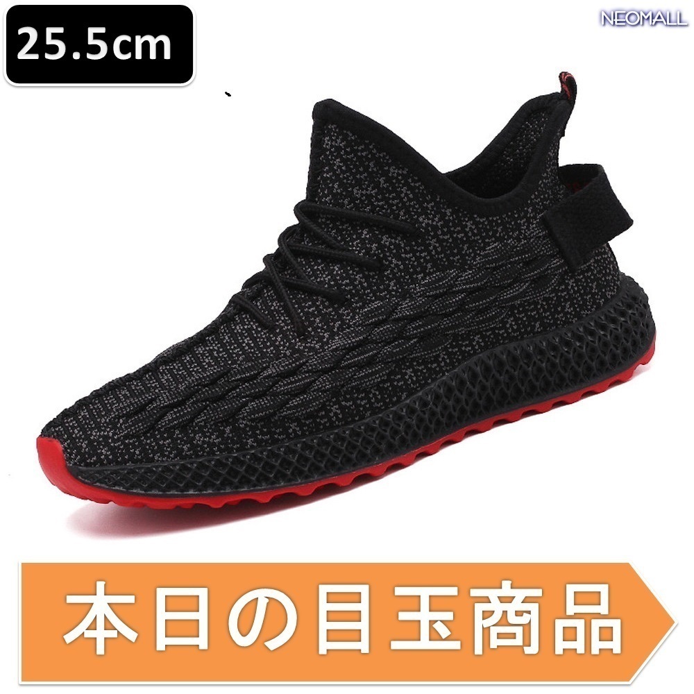 ☆ 激安 メンズ スニーカー 25.5cm ブラック×グレー 靴 シューズ 防滑 ランニング ジョギング 通勤 通学 旅行 【400】