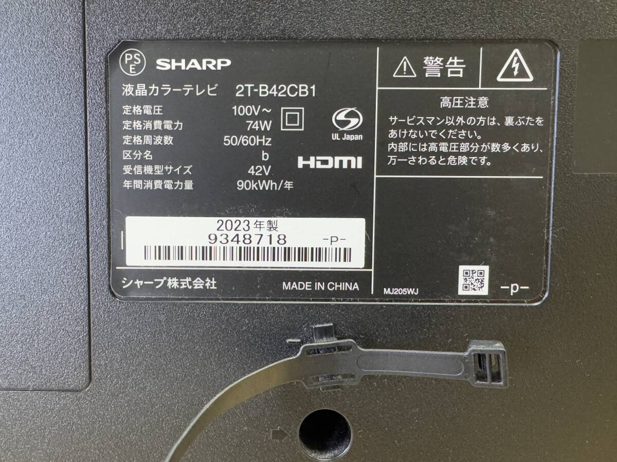 2023年製 綺麗 シャープ AQUOS 42型 LED 液晶テレビ 2T-B42CB1 AQUOS City接続可 ネット動画 u-next DMM 視聴可能 スタンド無し 管理SL218