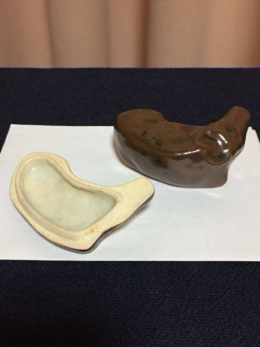 鉄釉なのか 錆色の表面の下から黒色が覗き、金属質の重厚な感覚があり 神秘的です。高取の牛香合に近い味わいの “格” の高い 簡略化された表現が印象的で、古格に溢れた佇まいが 大変に結構だと考えます(作家さんの春秋ついては Web検索が可能です。ぜひご一読ください)。