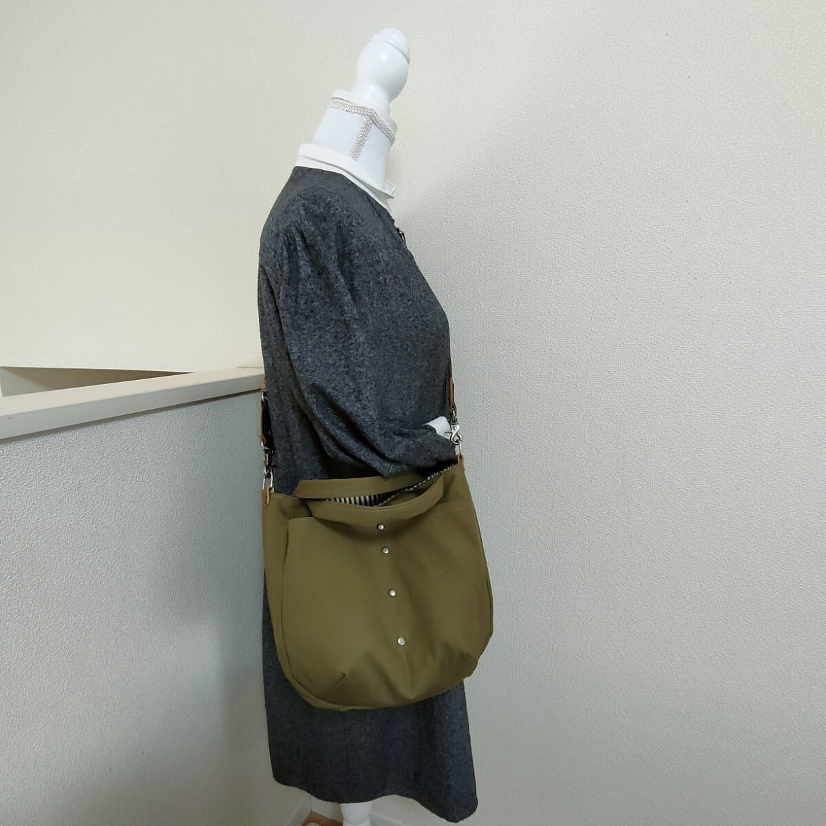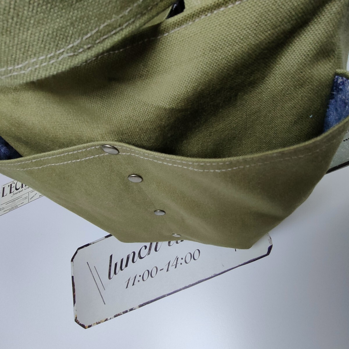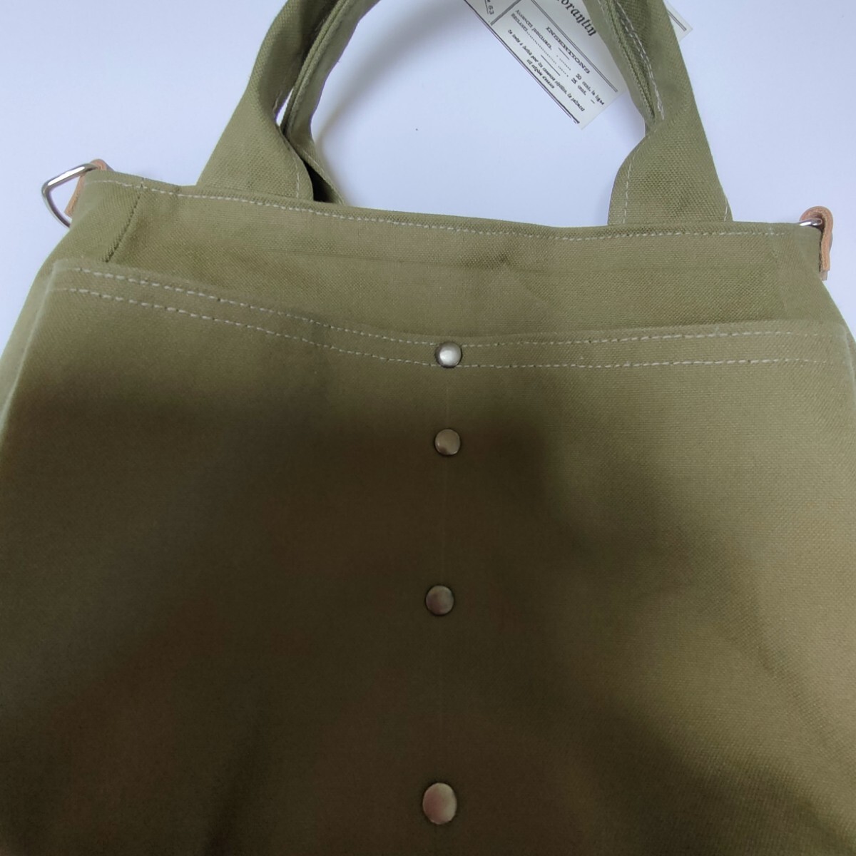 | 沢山の品の中から、ご覧いただきありがとうございます。 お店には売っていない、ハンドメイドの温かさをお届け出来ましたら幸いです。 カーキ色の11号帆布生地で、ぷっくりとしたバッグを作りました。 ♪サイズ 深さ・・・約22 横・・・ペタンと置いて入り口位置で29 マチ・・・9〜11 持ち手・・・26 ♪素材 表・・・11号帆布(コットン100)カシメ、Dカン、本革のタグ 内側・・・コットン ほどよい厚みの帆布生地で仕立てました。自立するバッグになっています。ダーツでぷっくりとした2部屋のポケットが、小物の収納に便利です。 Dカンをつけましたので、お手持ちの肩紐でショルダーや斜め掛けにもなります(画像の肩紐は出品していません) 内側は、ヒッコリーのようなコットンで。2部屋のポケットを付けました。 毎日の小物や、バッグを製作しています。 どうぞよろしくお願いいたします。 ★リネン、コットンは天然素材ならではのネップ、スラブ等ございます。 ★雨、汗、摩擦などで、色落ちする場合がございます。 ★生地の色、厚さに合わせなるべく糸を変えアイロンをこまめに掛けながら、職業用ミシンで丁寧に製作しています。 | |||