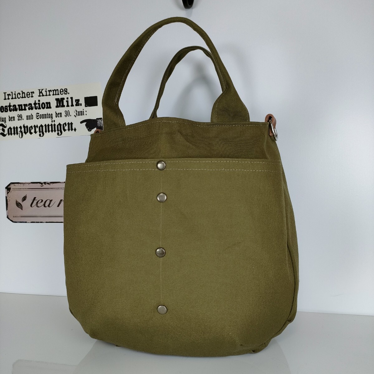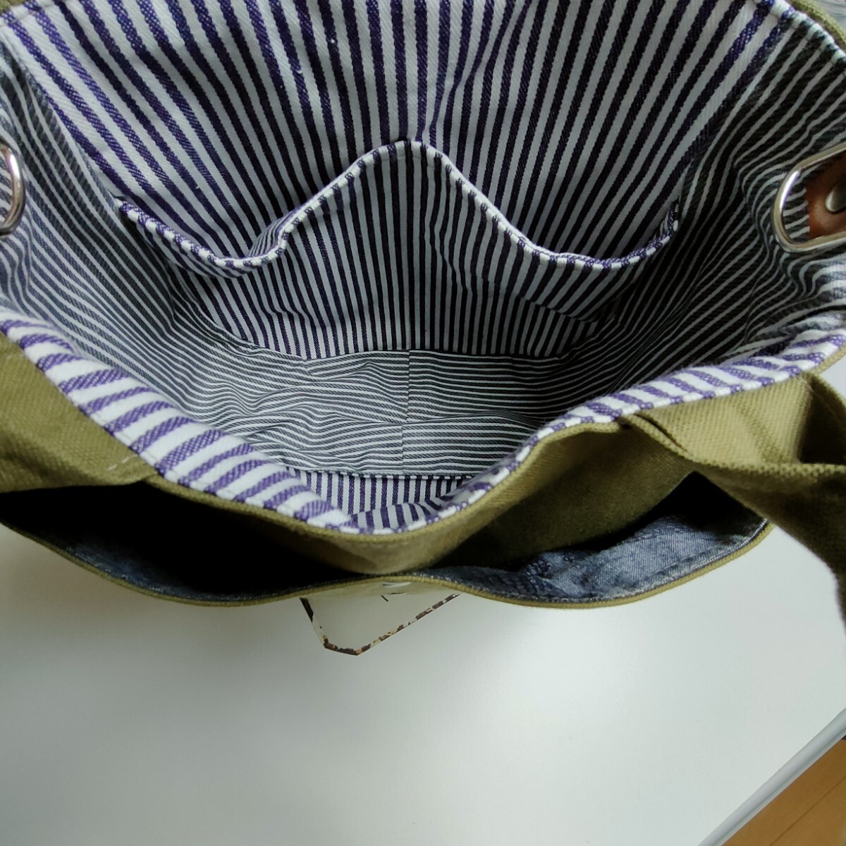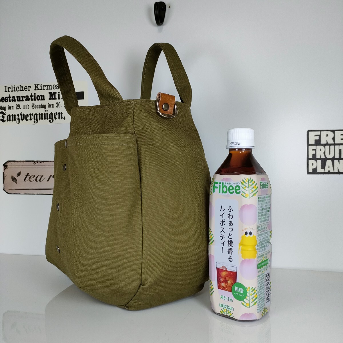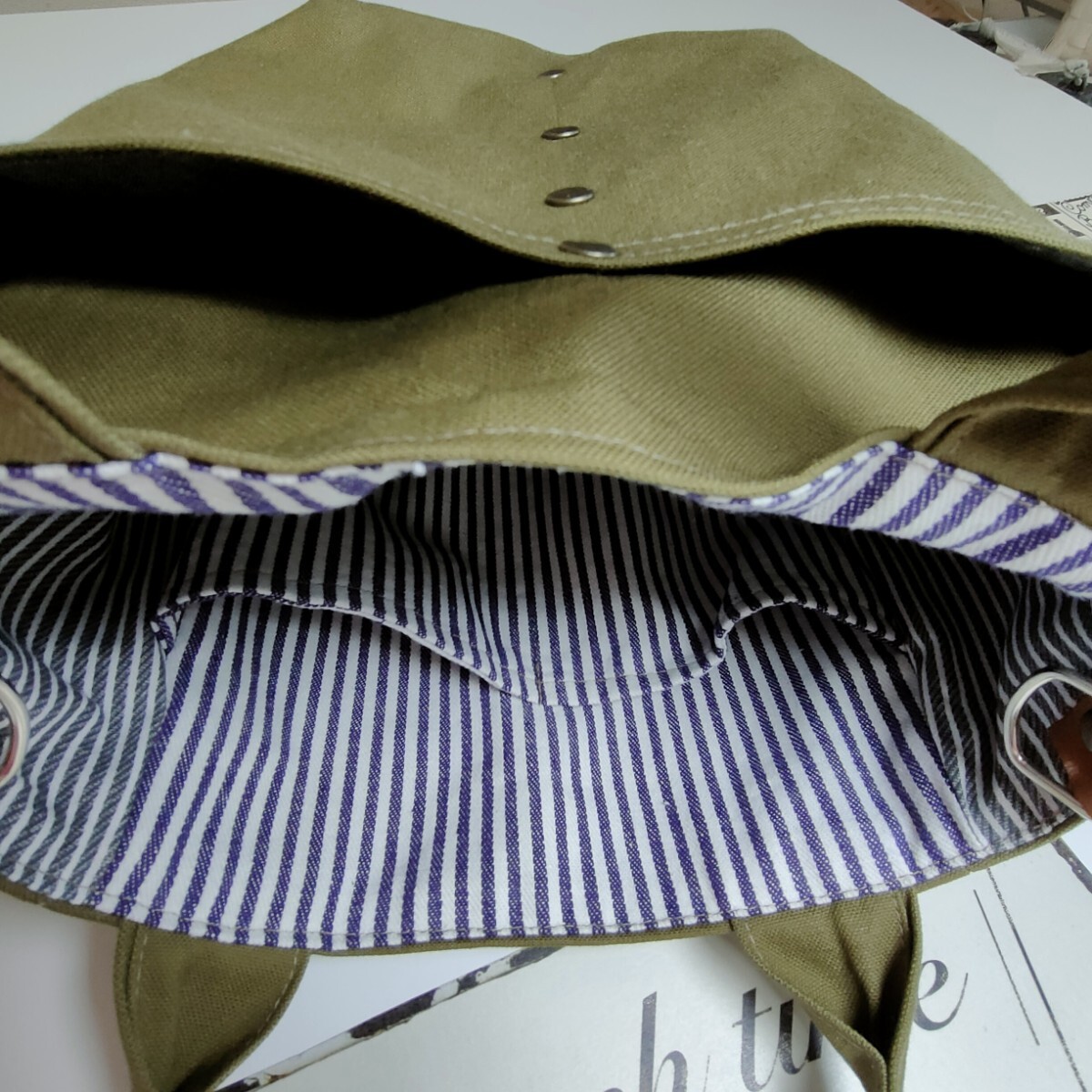 | 沢山の品の中から、ご覧いただきありがとうございます。 お店には売っていない、ハンドメイドの温かさをお届け出来ましたら幸いです。 カーキ色の11号帆布生地で、ぷっくりとしたバッグを作りました。 ♪サイズ 深さ・・・約22 横・・・ペタンと置いて入り口位置で29 マチ・・・9〜11 持ち手・・・26 ♪素材 表・・・11号帆布(コットン100)カシメ、Dカン、本革のタグ 内側・・・コットン ほどよい厚みの帆布生地で仕立てました。自立するバッグになっています。ダーツでぷっくりとした2部屋のポケットが、小物の収納に便利です。 Dカンをつけましたので、お手持ちの肩紐でショルダーや斜め掛けにもなります(画像の肩紐は出品していません) 内側は、ヒッコリーのようなコットンで。2部屋のポケットを付けました。 毎日の小物や、バッグを製作しています。 どうぞよろしくお願いいたします。 ★リネン、コットンは天然素材ならではのネップ、スラブ等ございます。 ★雨、汗、摩擦などで、色落ちする場合がございます。 ★生地の色、厚さに合わせなるべく糸を変えアイロンをこまめに掛けながら、職業用ミシンで丁寧に製作しています。 | |||