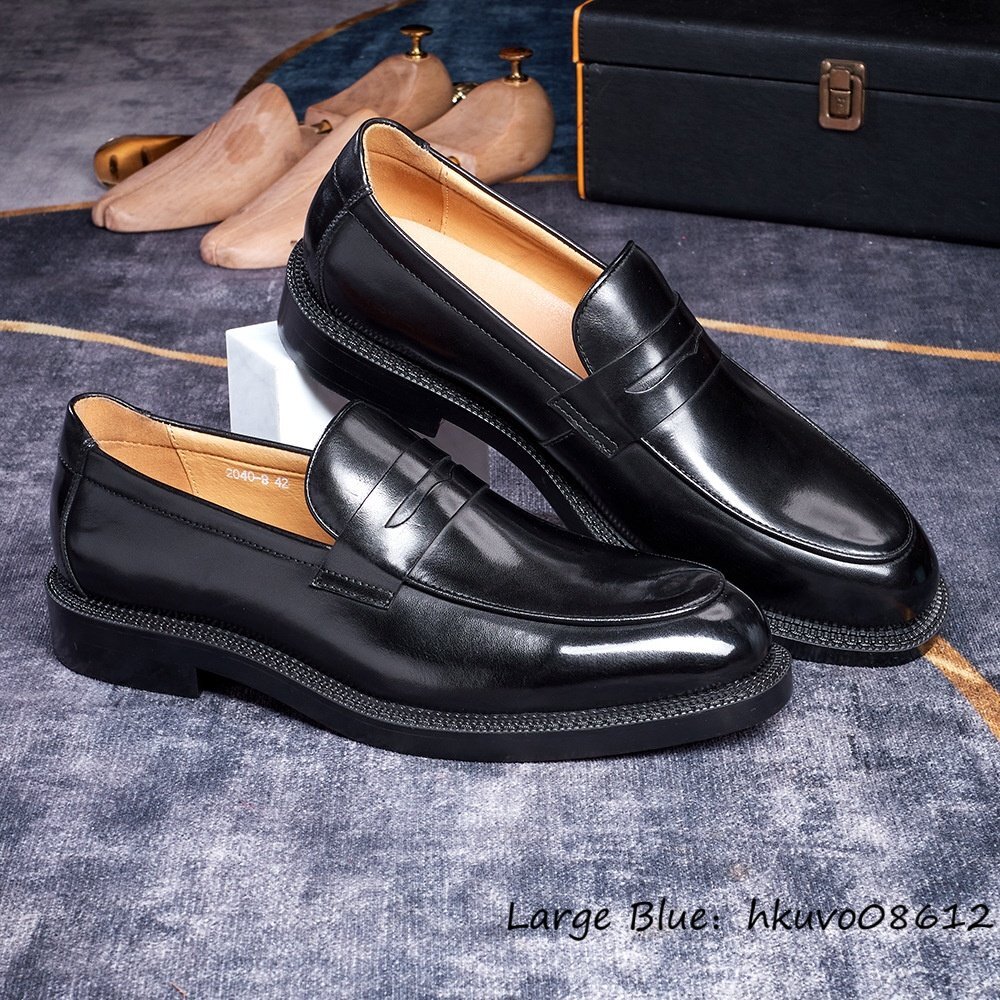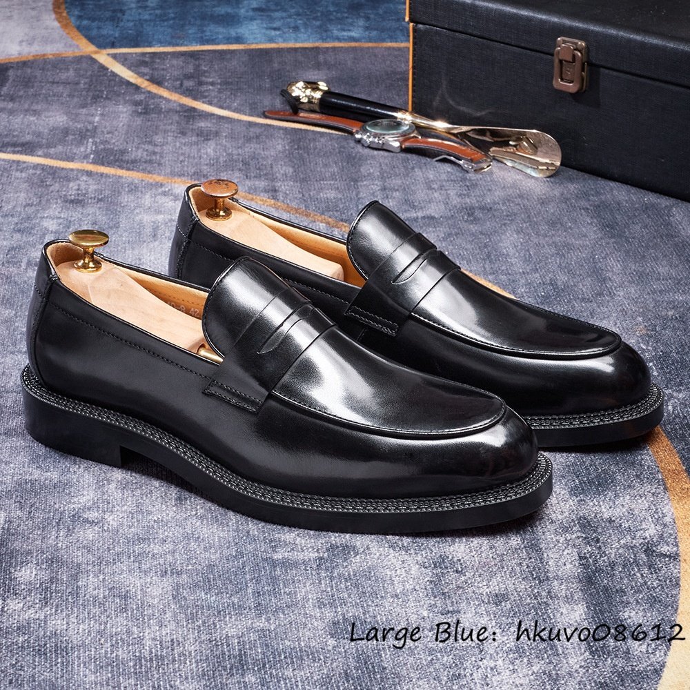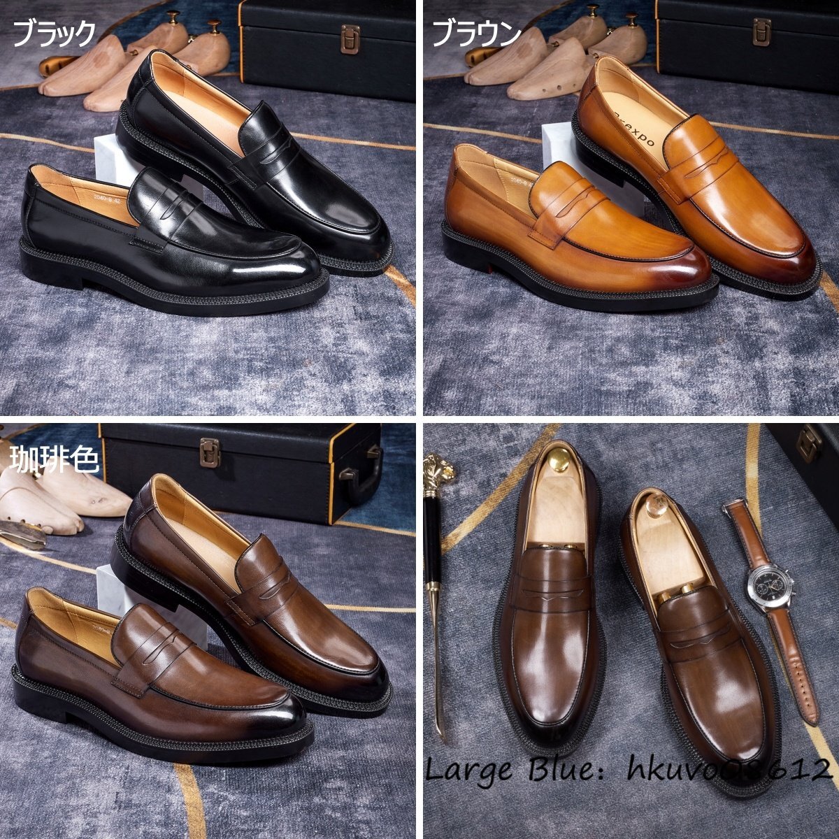 定価10万■超希少 レザーシューズ メンズ 本革 ビジネスシューズ 職人手作り スリッポン ローファー 高級牛革 革靴 紳士靴 ブラック 27.5cm