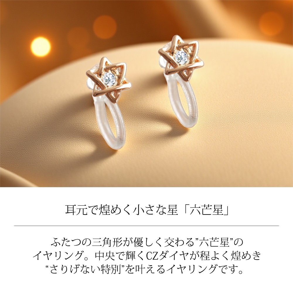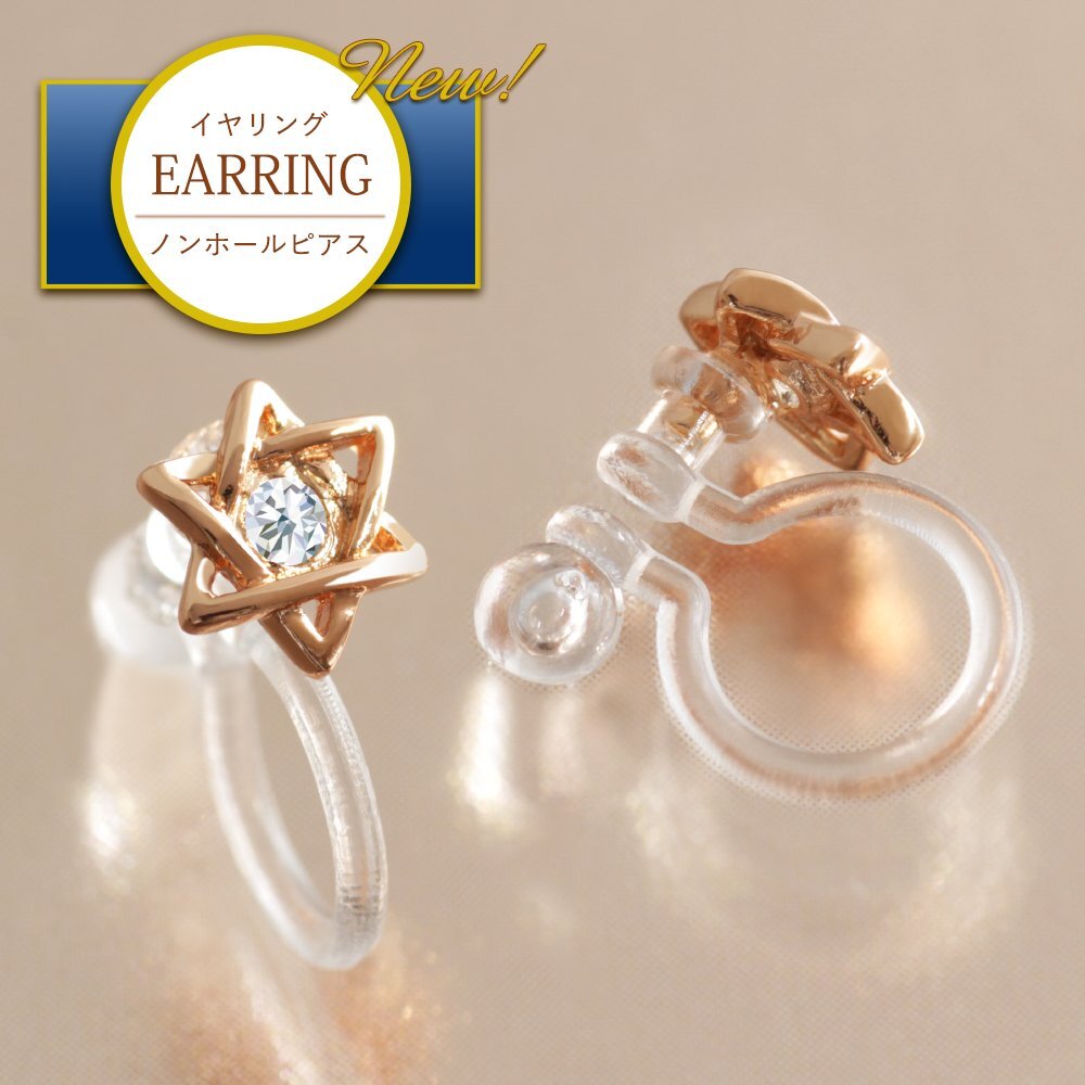 新品/イヤリング/K18GP/レディース/星/スター/シンプル/ピンクゴールド/18金/18kコーティング/ピアス見え/樹脂/金属アレルギー/ダイヤ/CZ