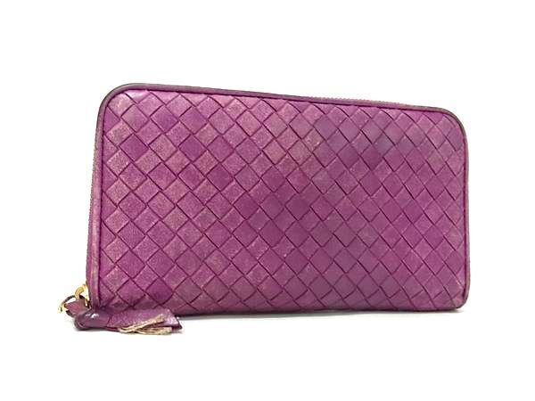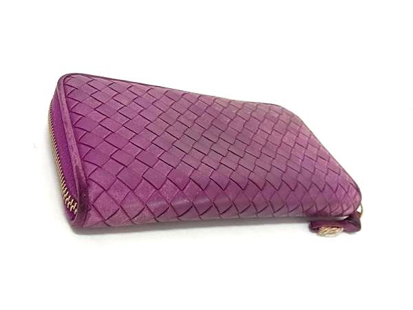 1円 BOTTEGA VENETA ボッテガヴェネタ イントレチャート レザー ラウンドファスナー 長財布 ウォレット 札入れ パープル系 FN7811