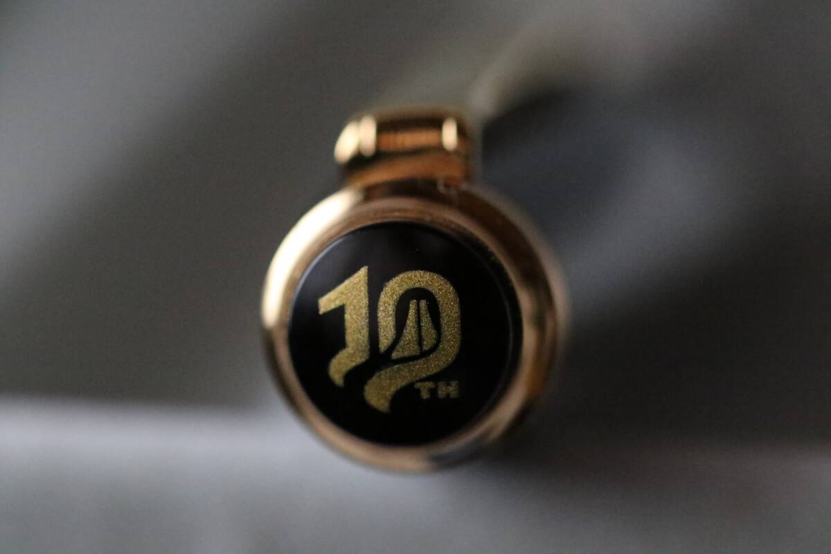 トップ(天飾)には 10 周年を記念したロゴが印刷され、尾飾にはシリアルナンバーが彫刻 されています。世界 3,776 本限定。