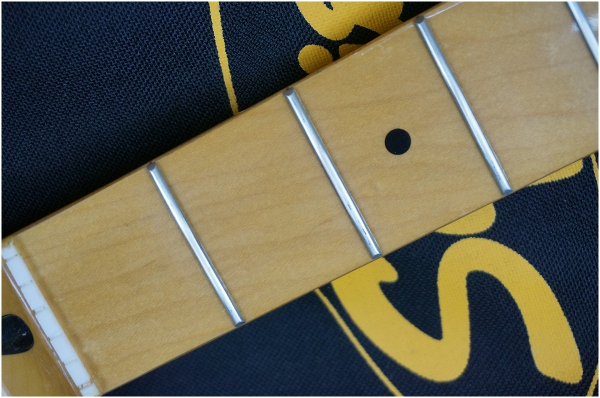 ピックガードにスレキズ・角付近にわずかな小キズございますが、表面にはしっかりとした艶があり、金属パーツもきれいな状態です。ペグの動きスムーズで、フレットに目立ような減りございません。アンプに接続して音出し確認済みで、セレクターやツマミもガリ無く機能しています。弦は新品に張替済みです。