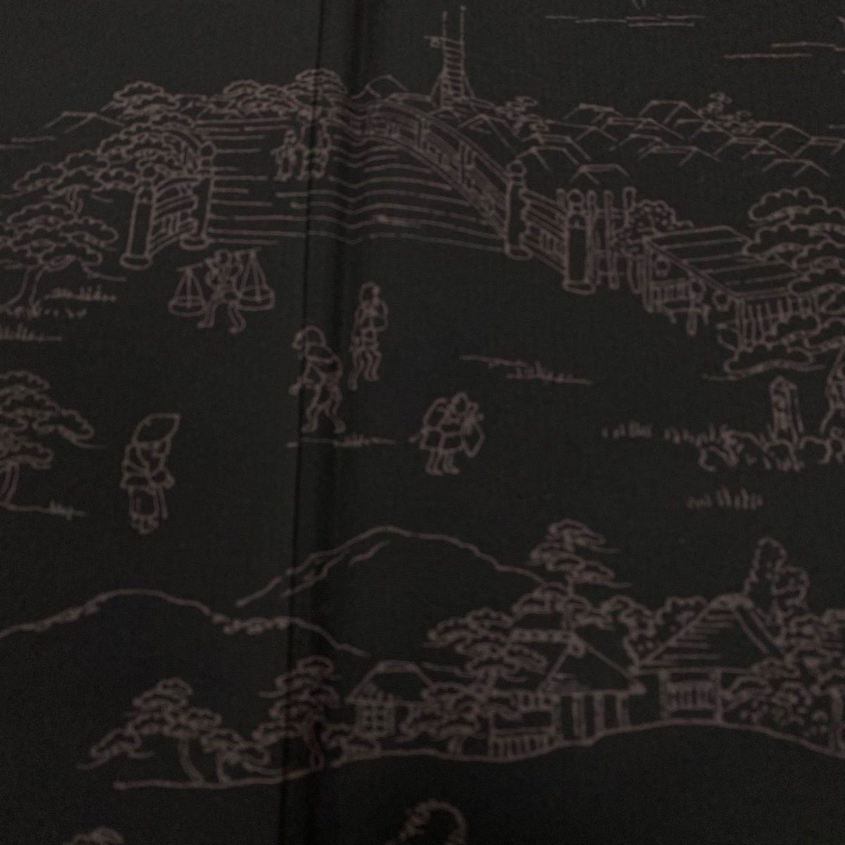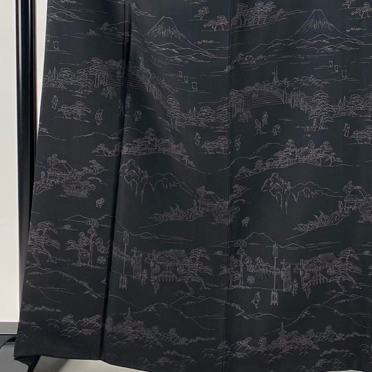 | 訪問着 美品 秀品 ますいわ屋 風景 松 墨色 袷 身丈162.5 裄丈66.5 M 正絹 【中古】 |