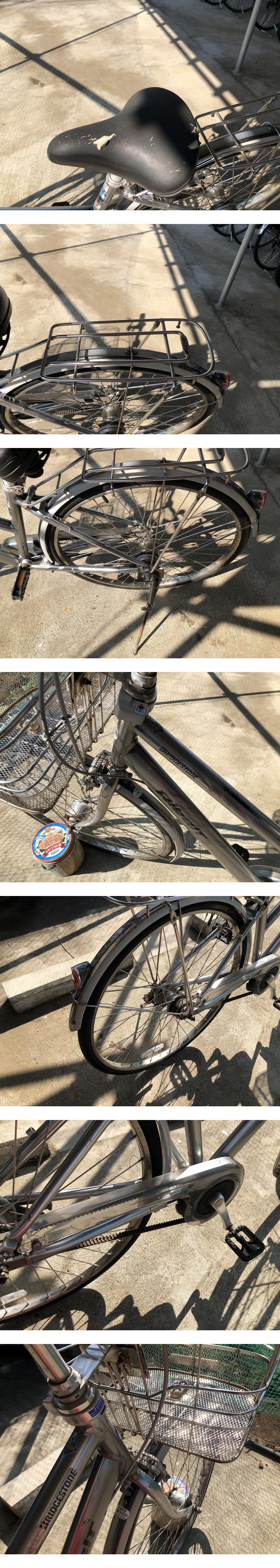 | ■商品説明■ | 564 中古自転車 ブリヂストン アルベルト シルバー 車体番号 KG3X26*** 商品・号機番号 わかりません 走行 ○ 本体ロックありません。 ご自身でチェーンロック カギ ご用意ください。 カギなし ギアチェンジ 固いです。 ・ブレーキ弱いです。 ・現状のお渡しです。 試乗して、走行の動作は確認できました。 (ホコリがかぶっています。ご自分で磨き上げて乗れる方へ) 出品時点では走行確認できておりますが、 機械ですので状態が変わることもまれにございます。 その他、タイヤの空気抜けや移動で細かい傷等はございます。 上記の内容が気になる方は、入札をご遠慮いただくようお願いします。 本格的に乗る場合は整備後にお乗りくださるようお願いいたします。 ご自分で整備できる方、または近所の自転車屋さんに頼める方の入札をお願いいたします。 クレーム・返信・返金等は一切お受けいたしません。 ご理解してご入札ください。 (落札した時点で理解したものとみなします。) ![]() powered by auction-labo.com |