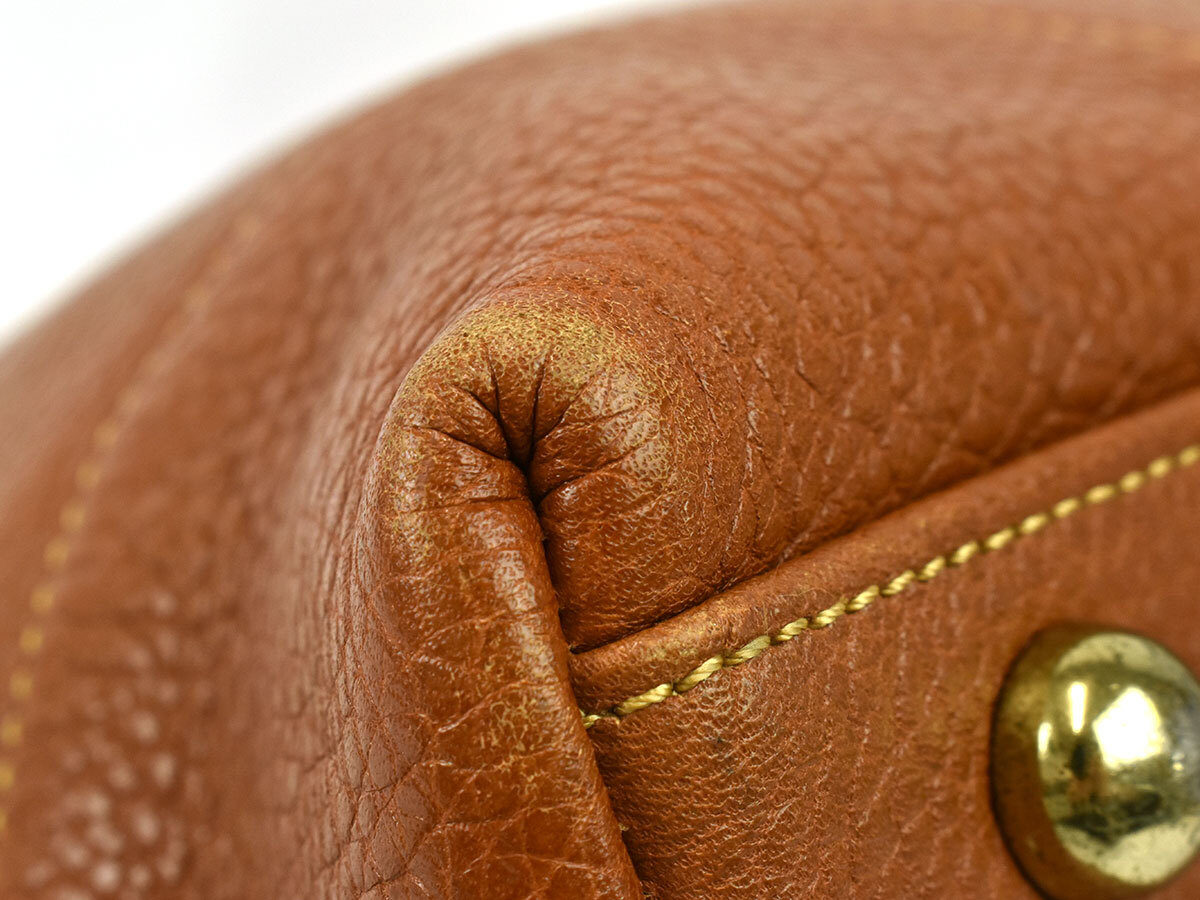 | 全体にヨレ、外側に線状のキズ、所々にスレ・凹み・シミ・黒ズミ、カドに大きな剥がれ、コバ全体にヒビ割れ・剥がれ、金具にキズ・メッキ剥がれがございます。 使用感が窺える商品ですので、ご理解の上ご入札をお願いいたします。 | |