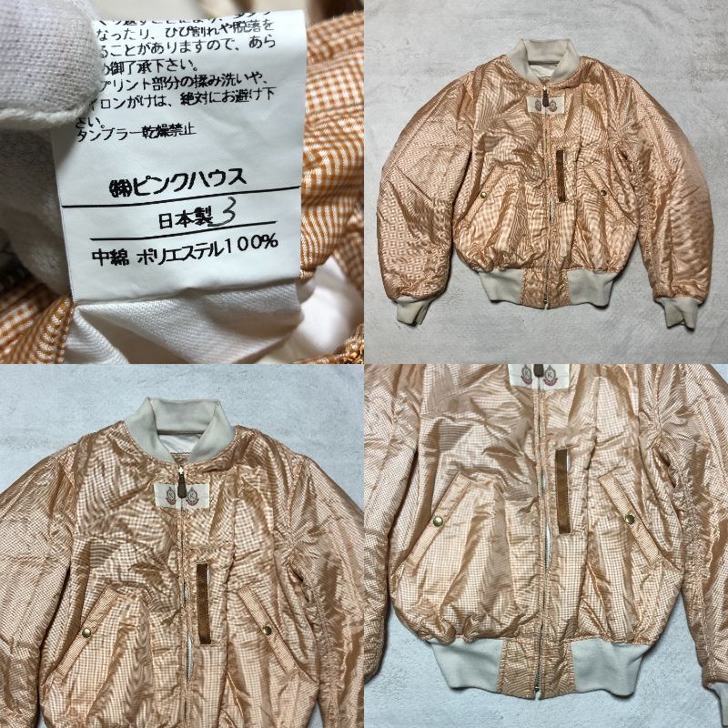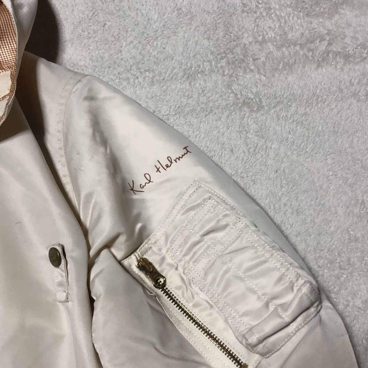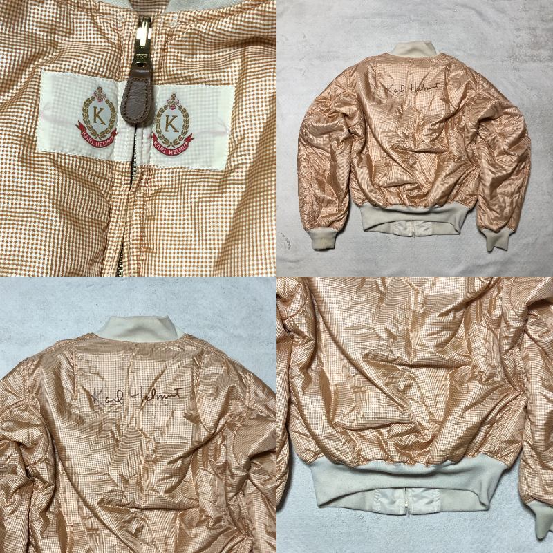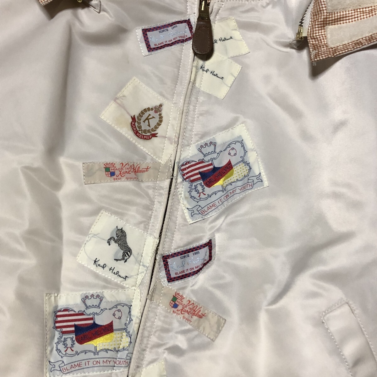 karl helmut カールヘルム ワッペンロゴ総柄 ロゴプリント MA-1タイプ 中綿ジャケット フライトジャケット 取り外し可能フード付き Mサイズ ピンクハウス