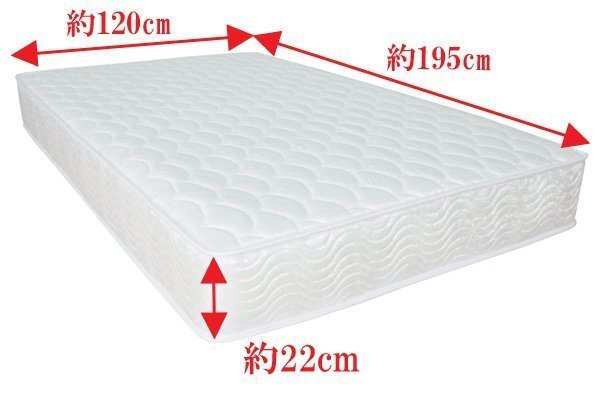 | 商品サイズ | サイズ:ウッドスプリングベッド…約120(幅)x約195(奥行)x約26(高さ)(cm) マットレス…約120(幅)x約195(奥行き)x約22(高さ)(cm) |