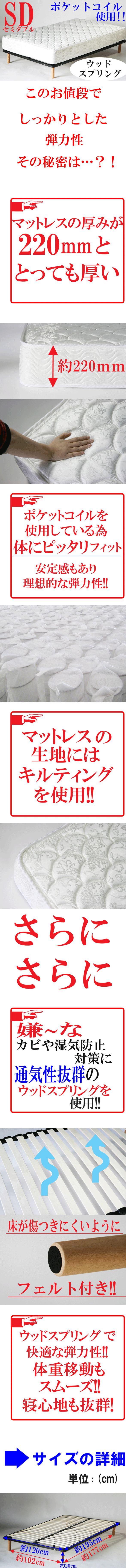 | 商品名 | ■送料無料■新品■脚付きマットレス■ウッドスプリングベッド■快適マットレス/適度な弾力性■◆ポケットコイル◆セミダブルベッドマットレス□◆セミダブル マットレス セミダブルマット セミダブルベッド すのこベッド BK |