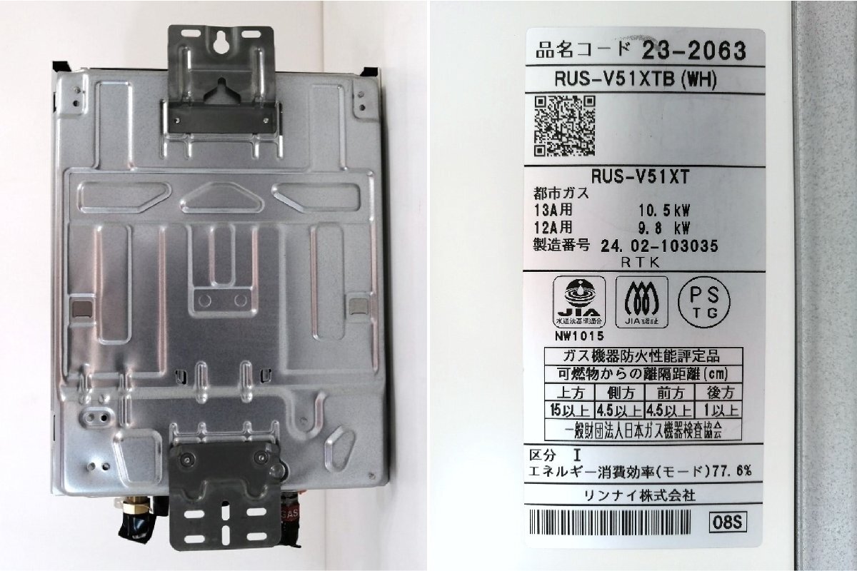 ■メーカー Rinnai ■品名 ガス瞬間湯沸器 / RUS-V51XTB(WH) ■寸法 W 290 ×D 136 × H 368 mm ■質量 5.4 kg ■ガス種類 都市ガス ■設置方式 屋内壁掛設置 ■製造年 2024年製 ■付属品 シャワーヘッド。写真記載のものが全てとなります。