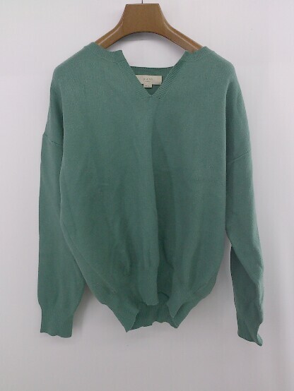◇ B:MING by BEAMS くすみカラー 無地 キーネック 長袖 ニット カットソー サイズONE グリーン系 レディース P
