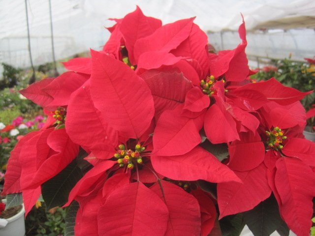 クリスマスを彩る、深紅の輝き。 赤いポインセチアで、心温まるホリデーシーズンを。