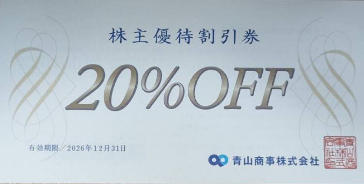 青山商事(紳士服青山)の株主優待割引券(20%OFF)