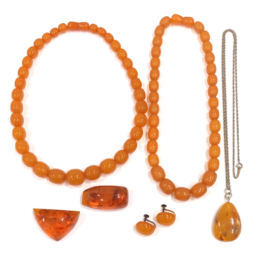 | 1円 琥珀 コハク ネックレス イヤリング ブローチ アクセサリー ファッション小物 6点 まとめ セット A22555 |