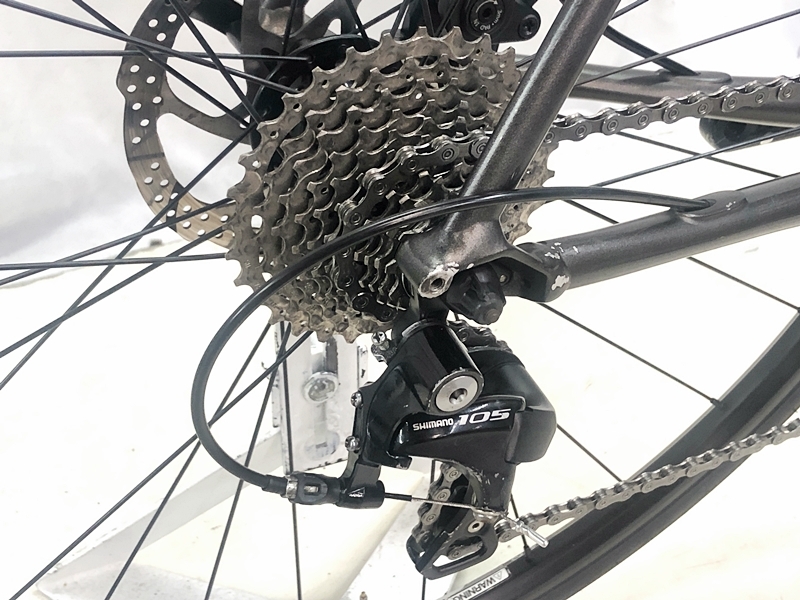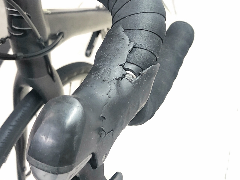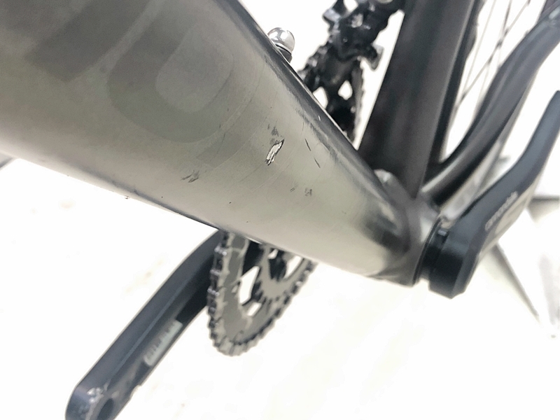 フレーム、その他外観:全体的にキズがあります。パーツ類にもすべてキズがあります。STIレバー左のフードがやぶれていて、STIレバーの左右にべたつきがあります。ボルト、金属パーツ部品にサビがあります。