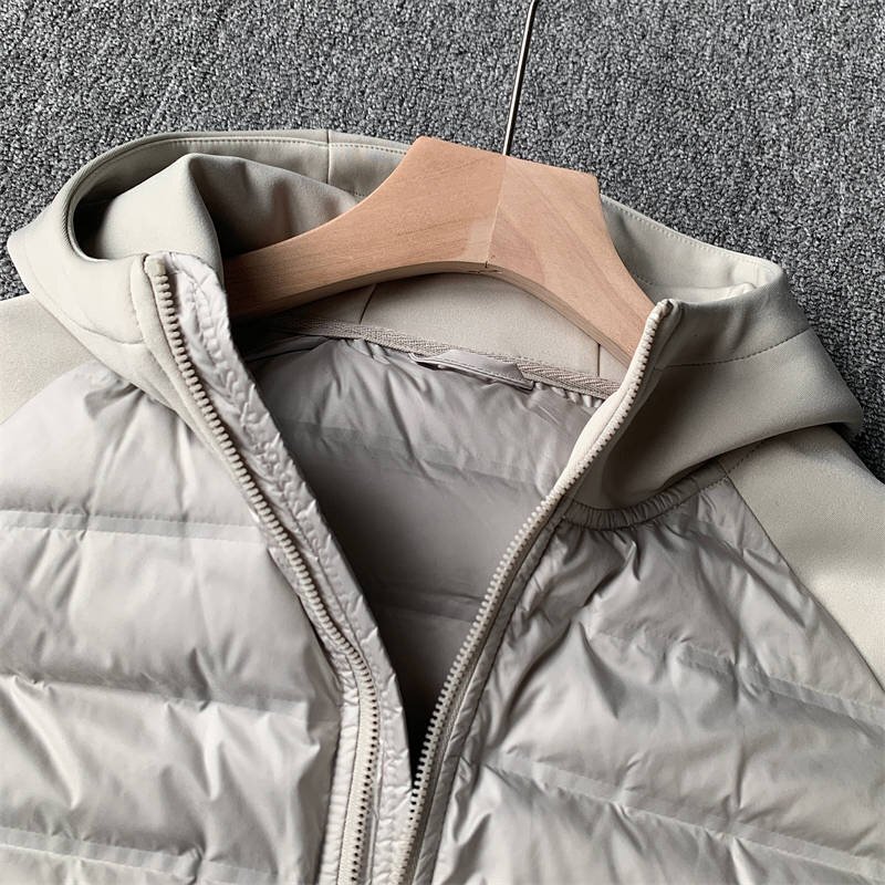 新品 DCKMANY ダウンジャケット ゴルフジャケット フード付き 切り替えスリーブ 秋 冬 軽量 暖か シームレスダウン 冬服 保温 メンズ ダウンアウター ベージュ E541-XL