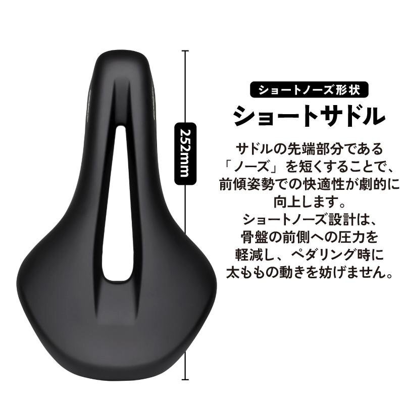 GORIX 自転車サドル GX-SA722 「どんな自転車にもフィットするショートサドル」 短いノーズと広いウィングを持つショートサドルは、太ももの干渉を防ぎ、スムーズなペダリングと前乗りポジションを実現します。 広いウィングが体重を分散し、安定した姿勢とリラックス感を提供。 圧力を軽減する穴あきデザインにより、快適性と通気性が向上します。 真空成型製法で縫い目や金具がなく、優れた耐水性と一体感のあるデザインが特徴。 耐久性の高いPVCレザートップとPUポリウレタンフォームが振動を吸収し、長期間使用可能です。 サドルレールのメモリ付きで調整も簡単。 ロードバイクやMTBなど幅広い自転車に対応する汎用性の高いサドルです。 特徴 ●短いノーズと広いウィングのショートサドル ●真空成型製法で縫い目や金具を無くし一体感のある仕上がり。雨天時には優れた耐水性を発揮。 ●サドルの先端が短い事で太ももが干渉しにくくなりスムーズなペダリングが可能。また前乗りポジションを取りやすい形状。 ●ウィング(幅)が広いことで、お尻が滑るのを防ぎ安定したポジションを維持できます。またウィング部分に体重を乗せることで、リラックスした姿勢を取ることができ、長時間のライドでも疲れにくくなります。 ●圧力分散と股擦れ軽減、圧迫が軽減、軽量化、通気性の向上が期待される穴あきデザイン ●弾力性と適度な厚み柔らかみ、反発性があるクッション ●PVCレザートップは耐久性が高く、耐水性、耐摩耗性にも優れており、雨や汗、摩擦にも強く、拭き取りなどお手入れがしやすい。 ●PUポリウレタンフォームは繰り返し使用してもへたりにくく、長期間にわたって形状を維持し、衝撃吸収性も高いため、振動を吸収し、体の負担を軽減します。 ●サドルレールのメモリは覚えておくと、次回以降も同じポジションを簡単に調整できます。 ●ロードバイクやクロスバイク、MTB、グラベル、Eバイク、小径車など様々なタイプの自転車に最適 【ショートサドル】 近年ロードバイクを中心に人気が高まっている種類にサドル。 サドル全体がコンパクトなため、ライディング時のポジション調整がしやすく、スムーズなペダリングを実現。 【短いノーズ】 太ももとの干渉を防ぎ、スムーズなペダリングが可能に。 特にダンシングや前乗りポジションを多用するライダーにとって理想的な形状です。 【広いウィング】 お尻が滑りにくく、安定感のある座り心地を実現。 さらに体重を分散し、リラックスした姿勢を取りやすく、長時間のライドでも疲れにくくなります。 【真空成型製法】 縫い目や金具がない一体型デザインで、優れた耐水性を発揮。雨天時でも安心して使用でき、見た目も洗練されています。 【穴あき形状】 前立腺や股間への圧迫を軽減し、血流を妨げにくい設計。通気性も向上し、長時間でも快適にライドを楽しめます。 【弾力性、反発性】 路面からの振動をしっかり吸収し、体への負担を軽減。柔らかさと反発性のバランスが取れており、快適な座り心地が長く続きます。 【PVCレザートップ】 耐水性と耐摩耗性に優れ、雨や汗、摩擦にも強いため、天候や使用状況に左右されず、さらに拭き取りが簡単でメンテナンスも手間いらずです。 【PUポリウレタンフォーム】 衝撃吸収性が高く、繰り返し使用しても形状が崩れにくいので、振動を吸収しながら長期間快適さを保ちます。 【サドルレールのメモリ】 位置を記録するメモリ機能により、毎回同じポジションを簡単に再現でき、ライディングの効率性が向上します。 【商品内容】自転車サドル 【サイズ】長さ252mm, ウイング幅156mm 【重量】292 g 【レール】スチールレール 【仕様】ポリウレタンフォームパッド、耐衝撃性樹脂PPベース、PU黒レザートップ 商品は入荷によりキズがある場合があります。 傷や細かい汚れが気になる方や神経質な方は入札をお控え下さい。 入荷時期により予告無く一部仕様変更する場合が有ります。 カラーはディスプレイ種類環境等により実物と異なって見える場合がございます。 |