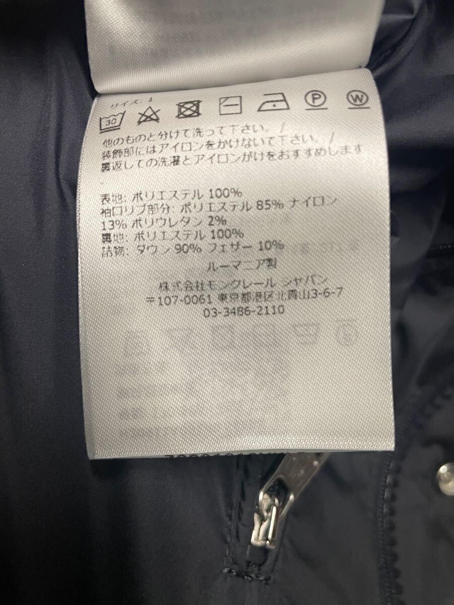 2022 モンクレール AMARANTEダウン、サイズ1、美品、ダークネイビー、認証タグあり。