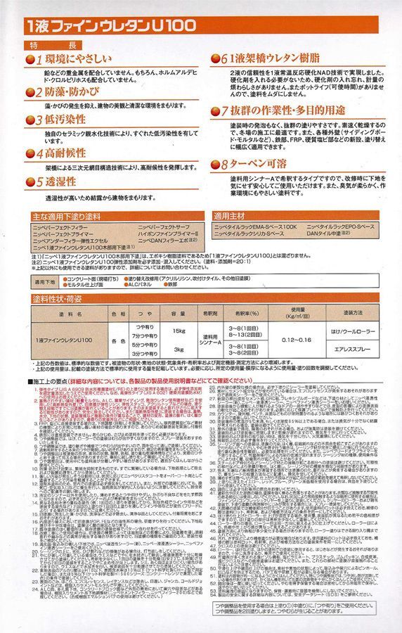 1液ファインウレタンU100は架橋による三次元網目構造技術により、すぐれた耐久性を発揮します。