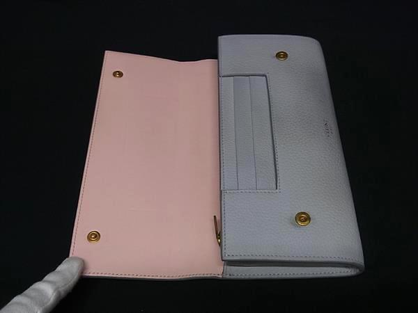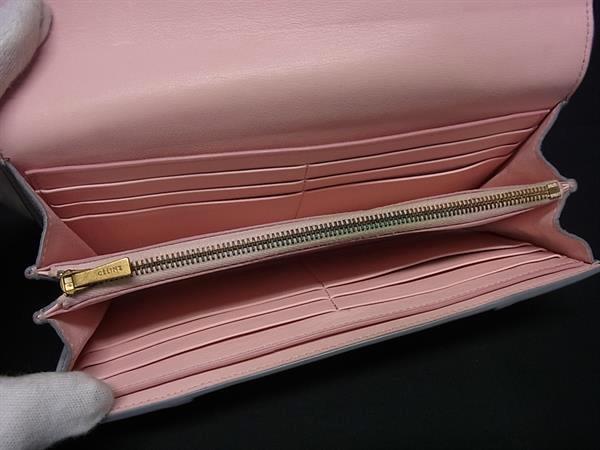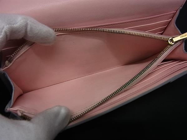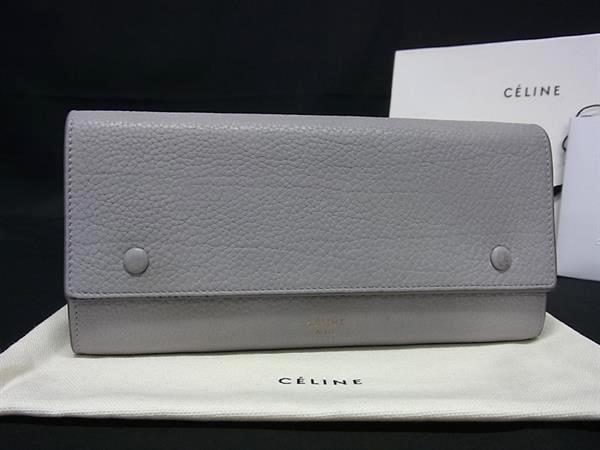 1円 CELINE セリーヌ ラージフラップ マルチファンクション レザー 二つ折り 長財布 ウォレット 小銭入れ 札入れ グレー系 FN8306
