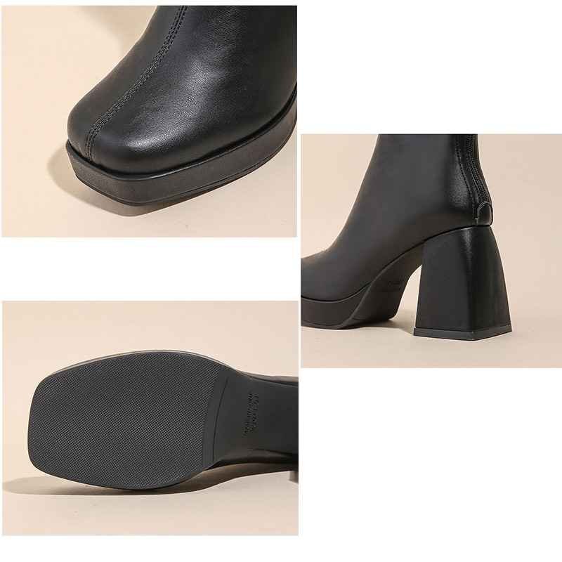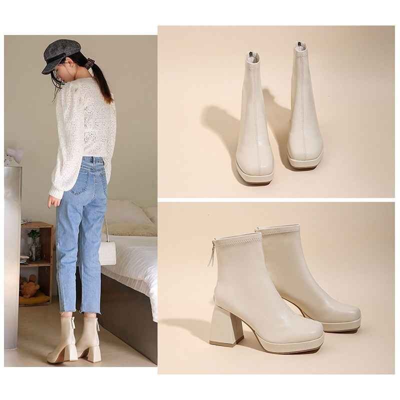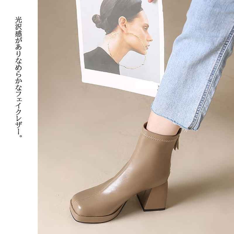 靴 ブーツ 裏起毛 ショート 太ヒール 裏起毛 美脚 脚長 スタイルアップ ミドル 35 クリームホワイト