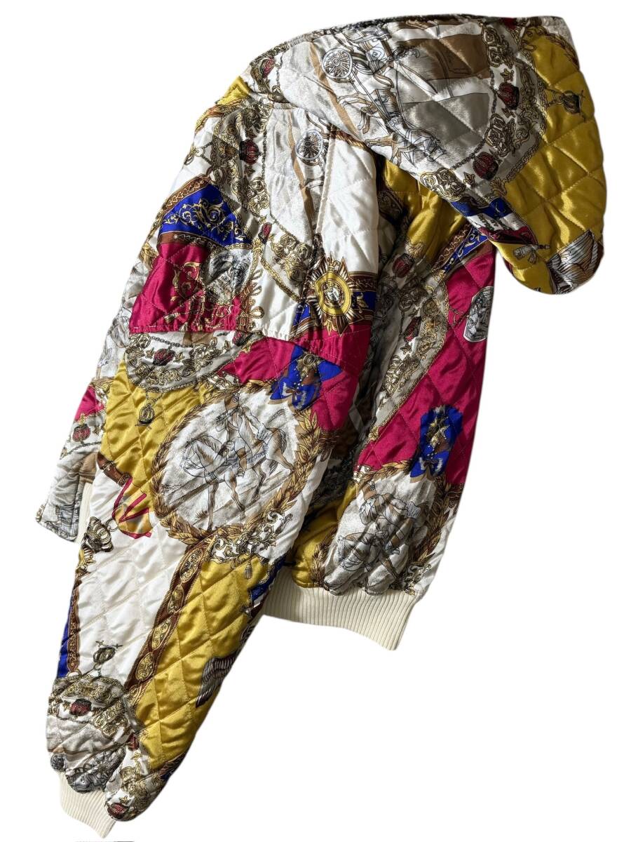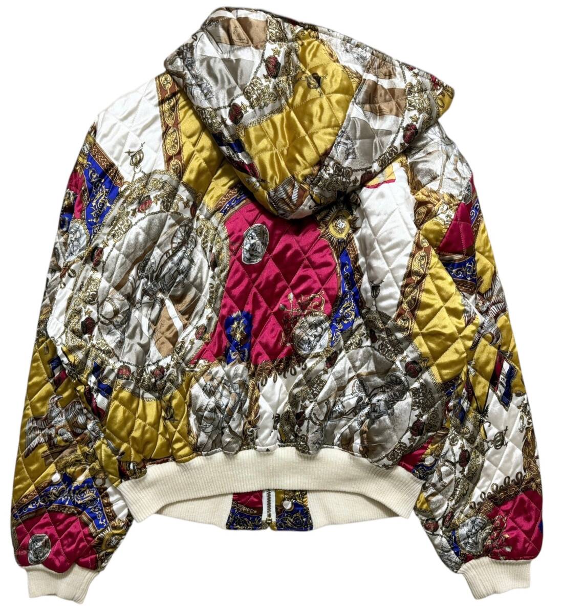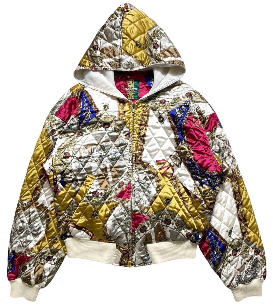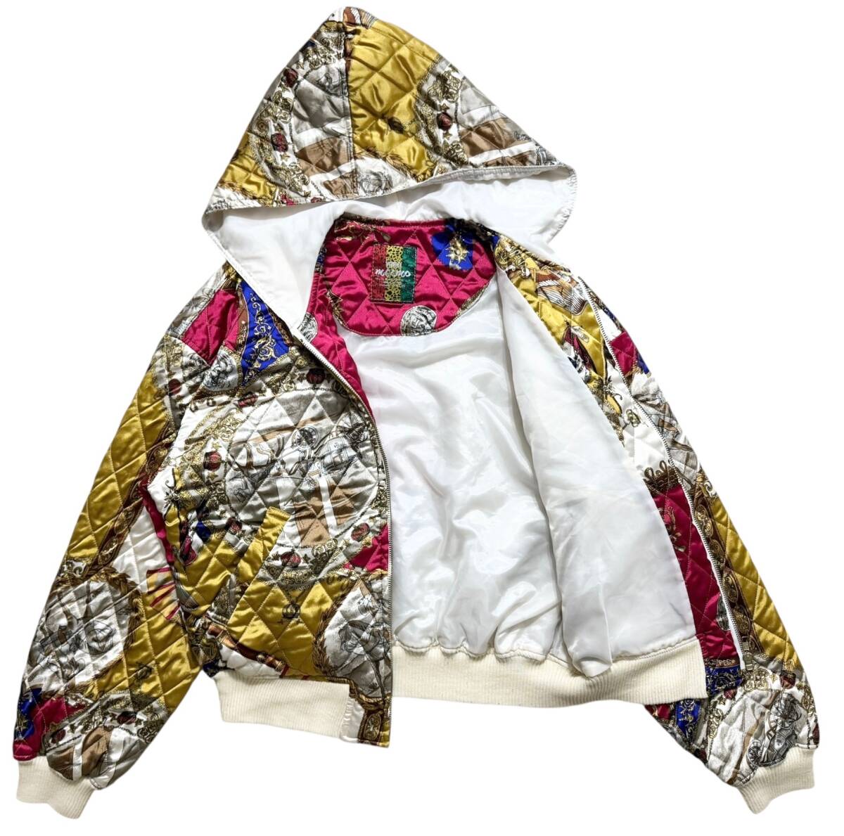 ヴィンテージ オールド 90s 日本製 キルティング加工 スカーフ調 総柄 フード付き ボンバージャケット M レディース