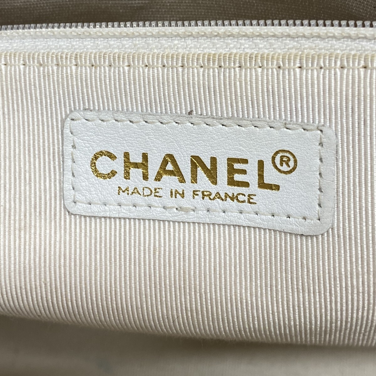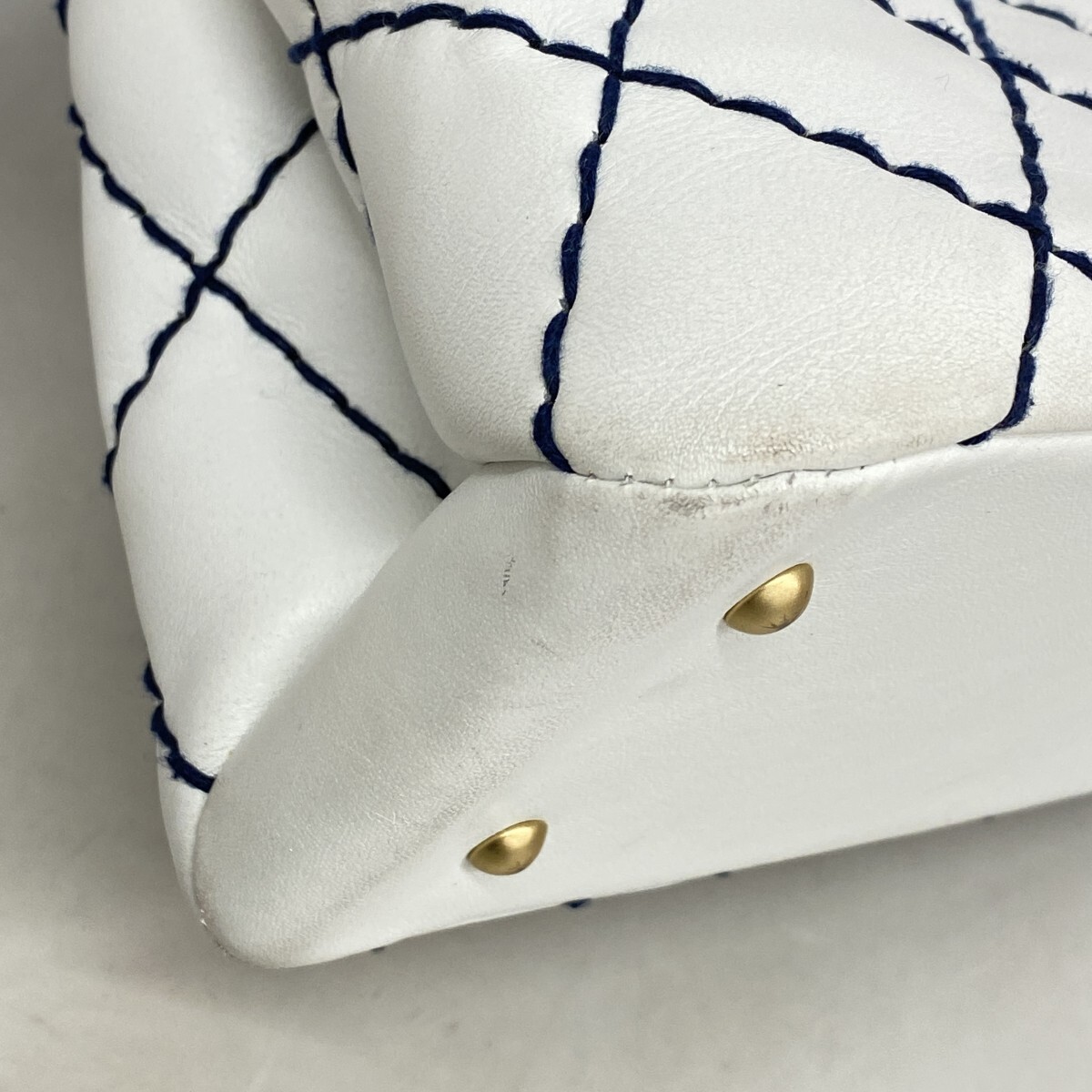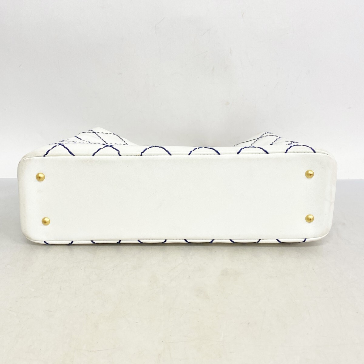 【5od4616-h】シャネル トートバッグ ワイルドステッチ チェーンショルダー ラムスキン ホワイト ゴールド金具【中古】レディース