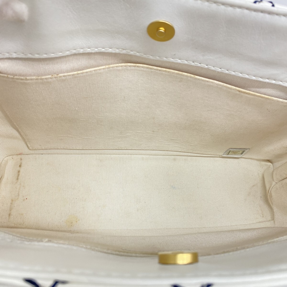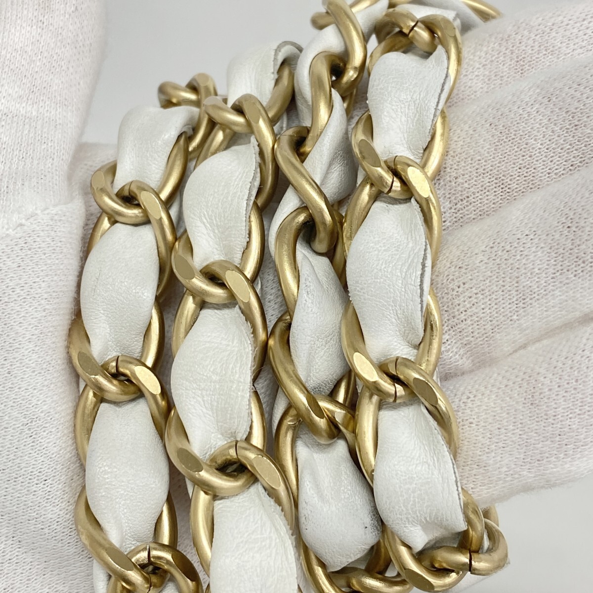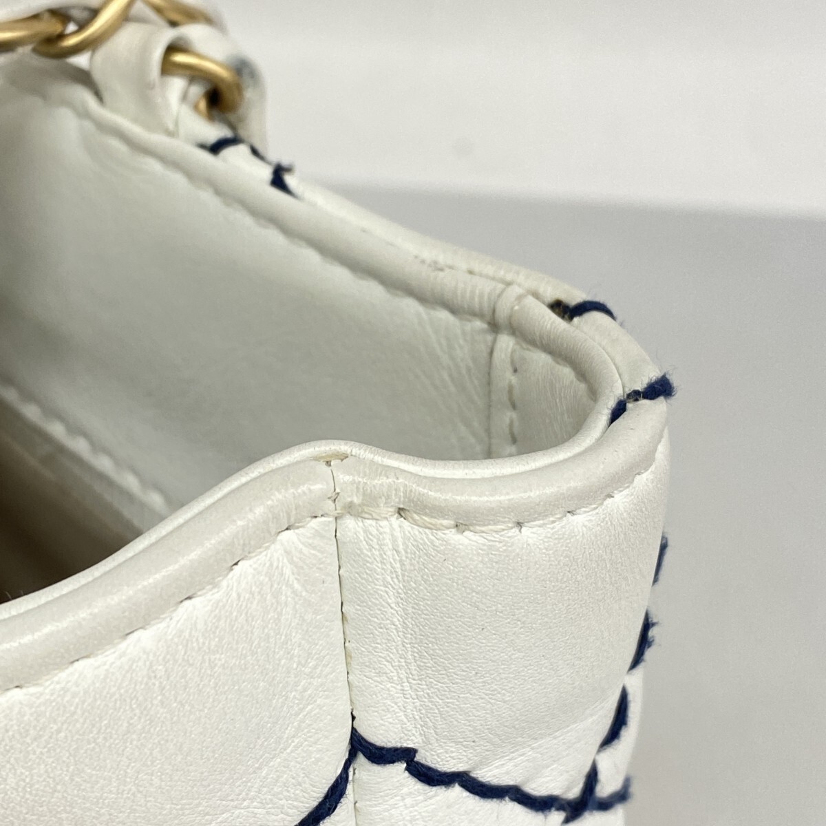 【5od4616-h】シャネル トートバッグ ワイルドステッチ チェーンショルダー ラムスキン ホワイト ゴールド金具【中古】レディース
