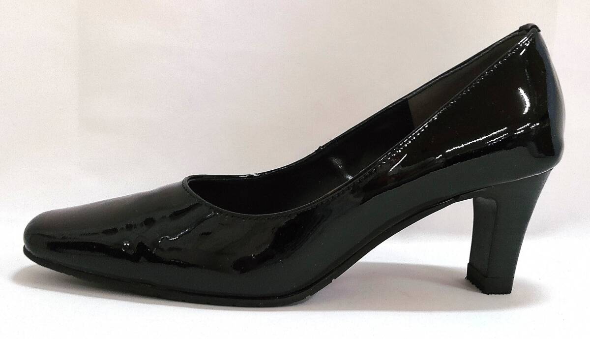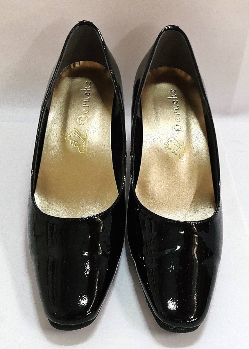| M[宅60]4519 Doruche ドルチェ パンプス チャンキーヒール 22.5cm EEE エナメルブラック 日本製 卒業式 入学式 フォーマル 未使用品 | ||