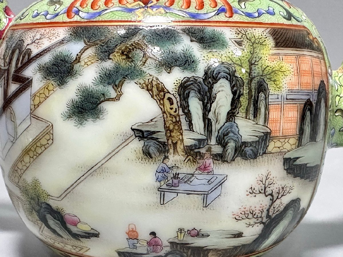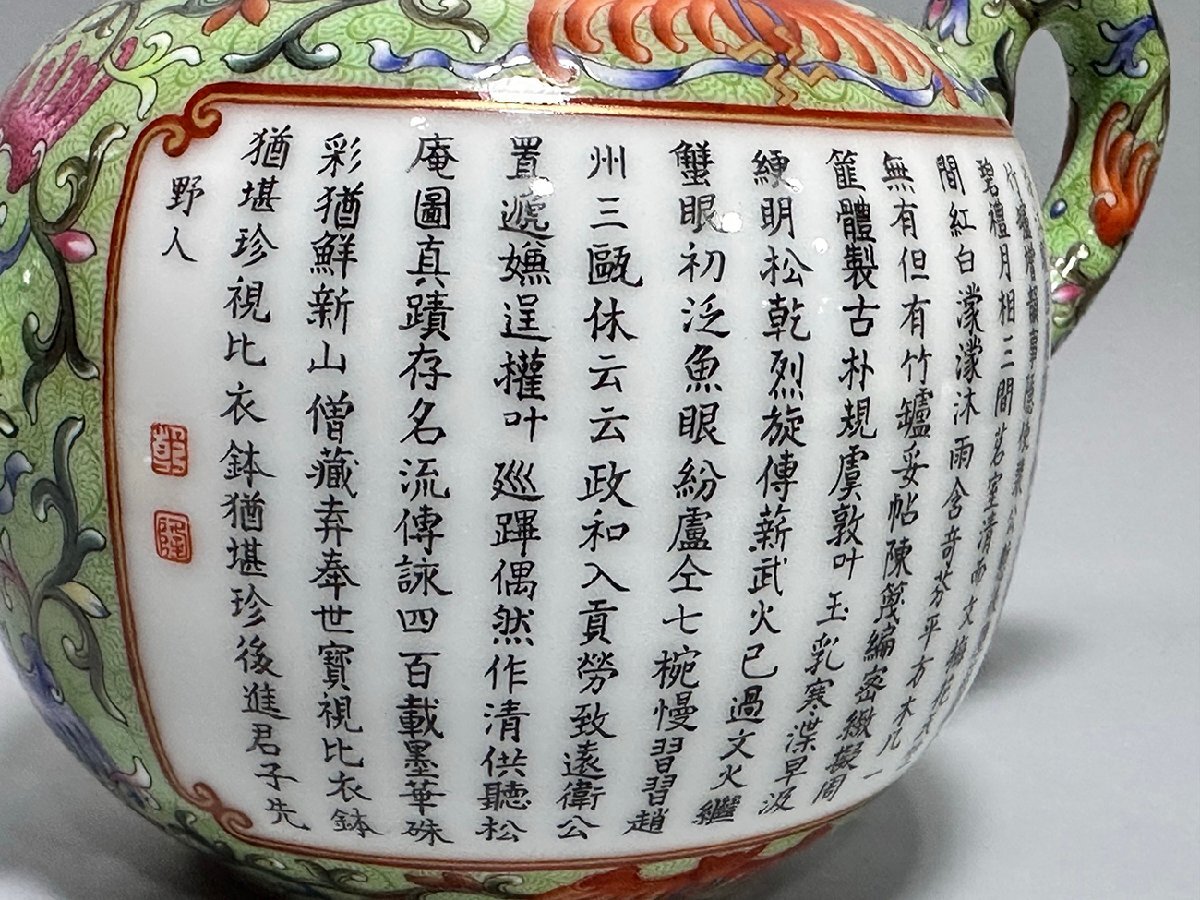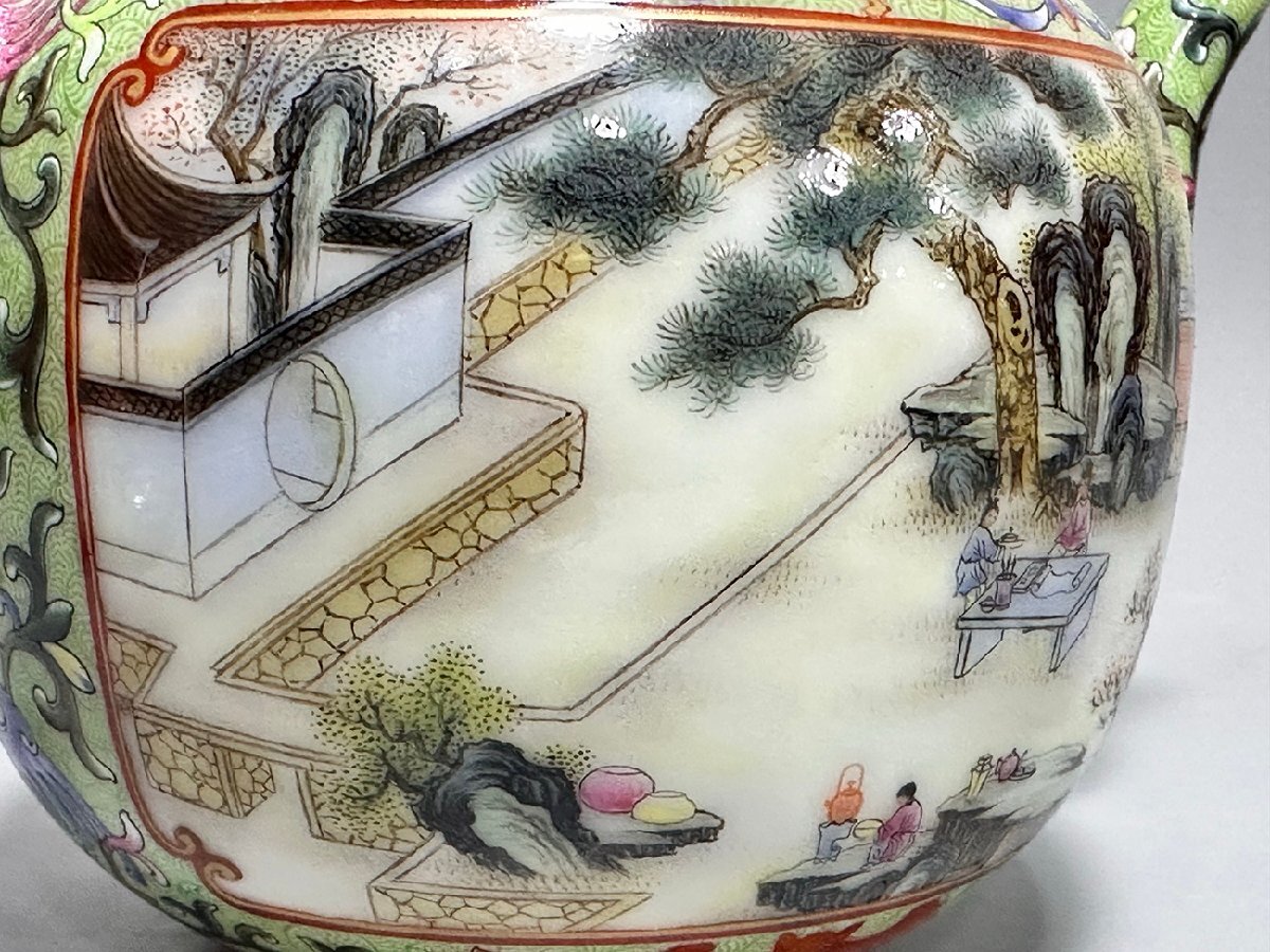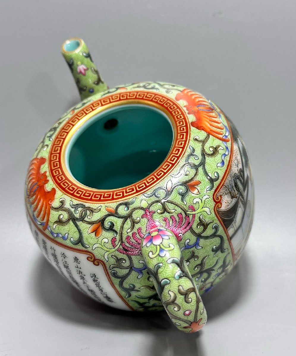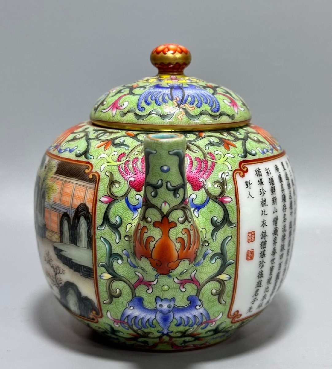 【安】清時代 大清乾隆年製 琺瑯彩鳳尾草鳳穿纏枝漢詩紋開光人物図茶壺 唐瓷 古陶瓷 中国古美術 古董品 304 サイズ(約寸) |