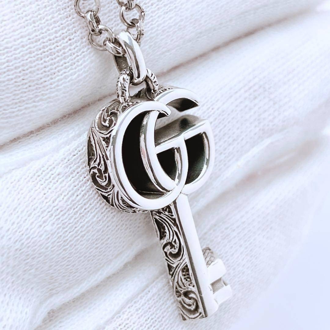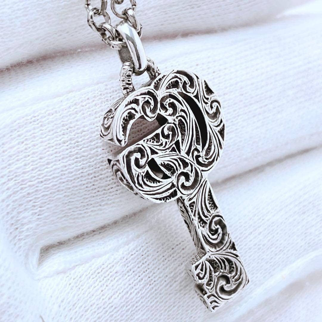 アラベスク柄の鍵モチーフにロングチェーンがおしゃれなネックレスです