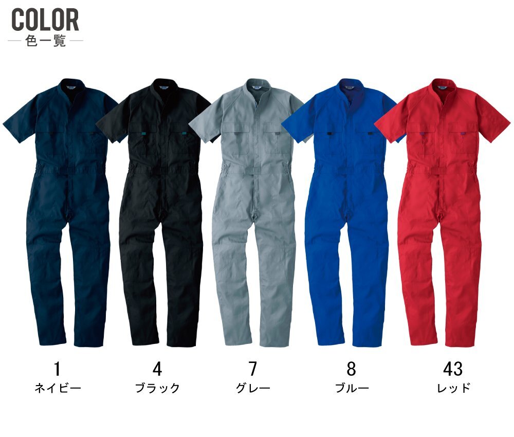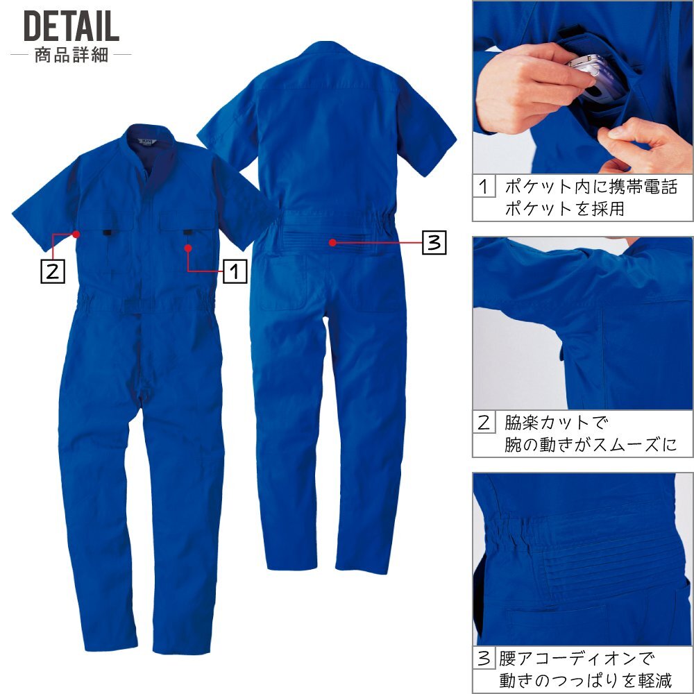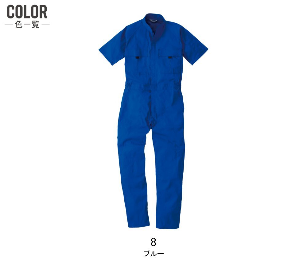 SOWA 春夏 半袖 つなぎ 9007 綿100% 動きやすい 吸汗性 色:ブルー サイズ:6L ★ 対象2点 送料無料 ★