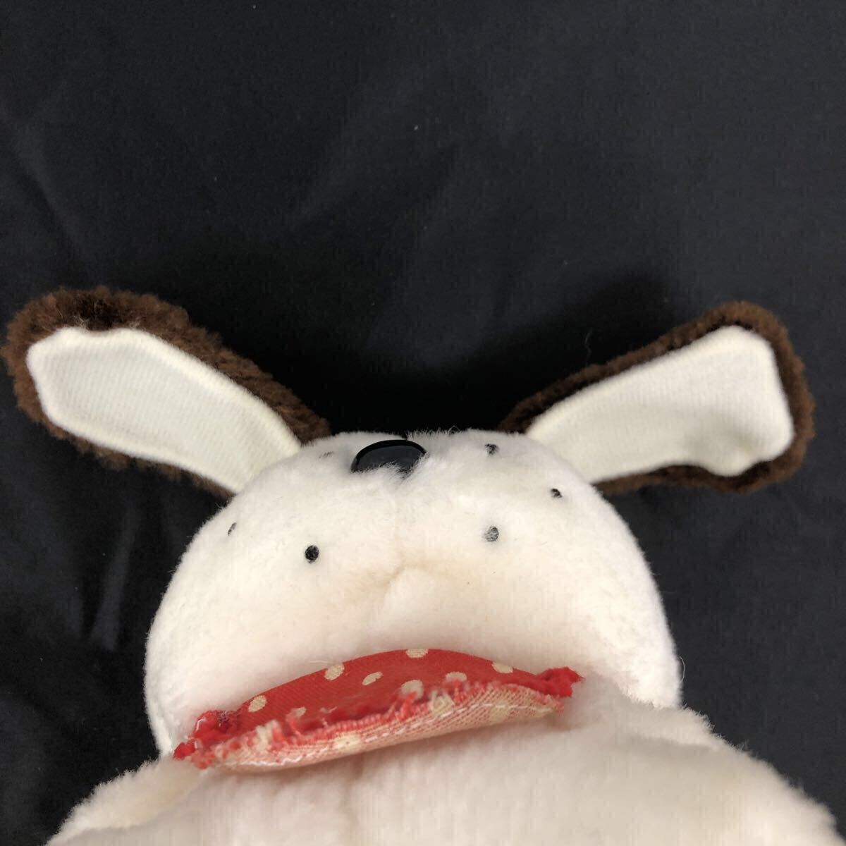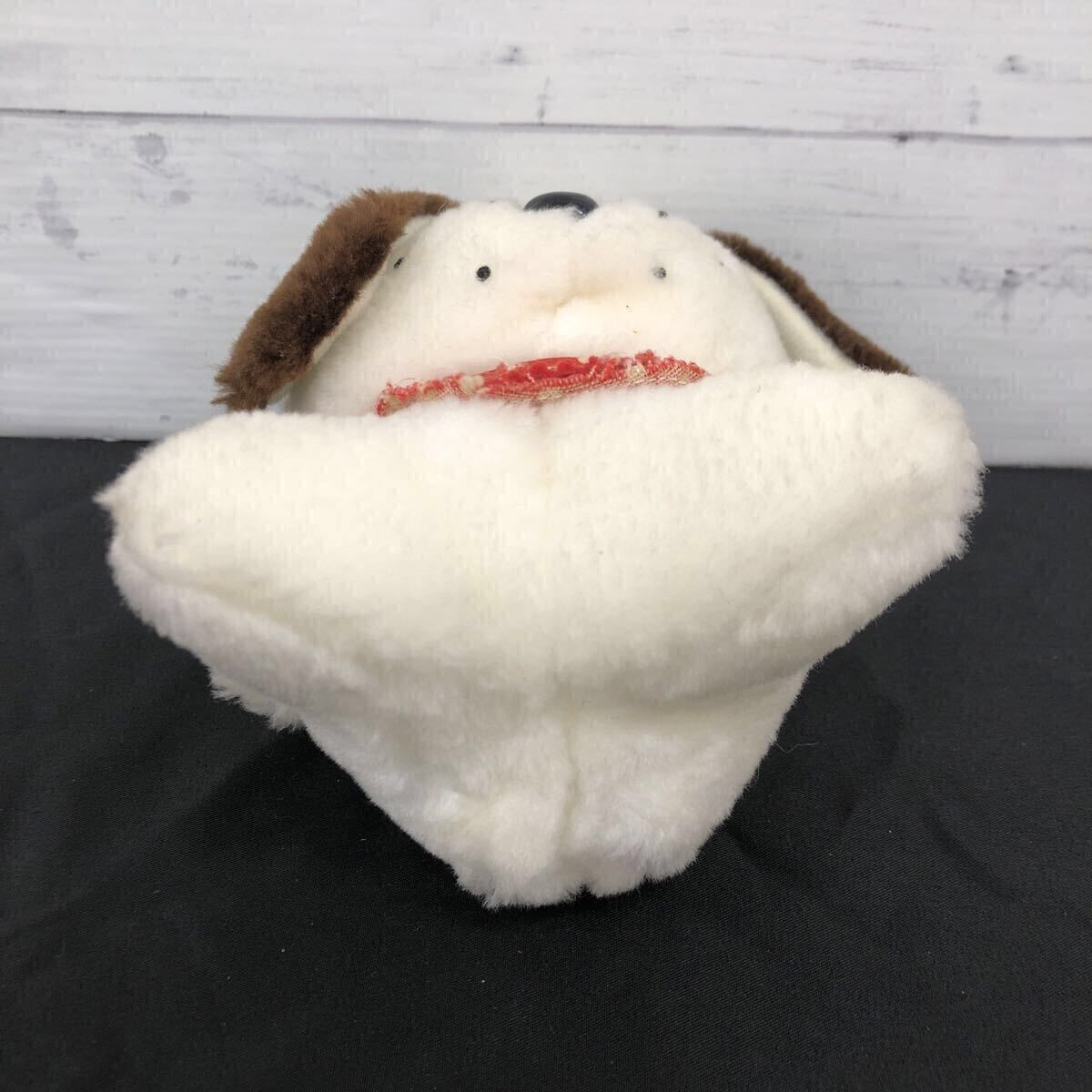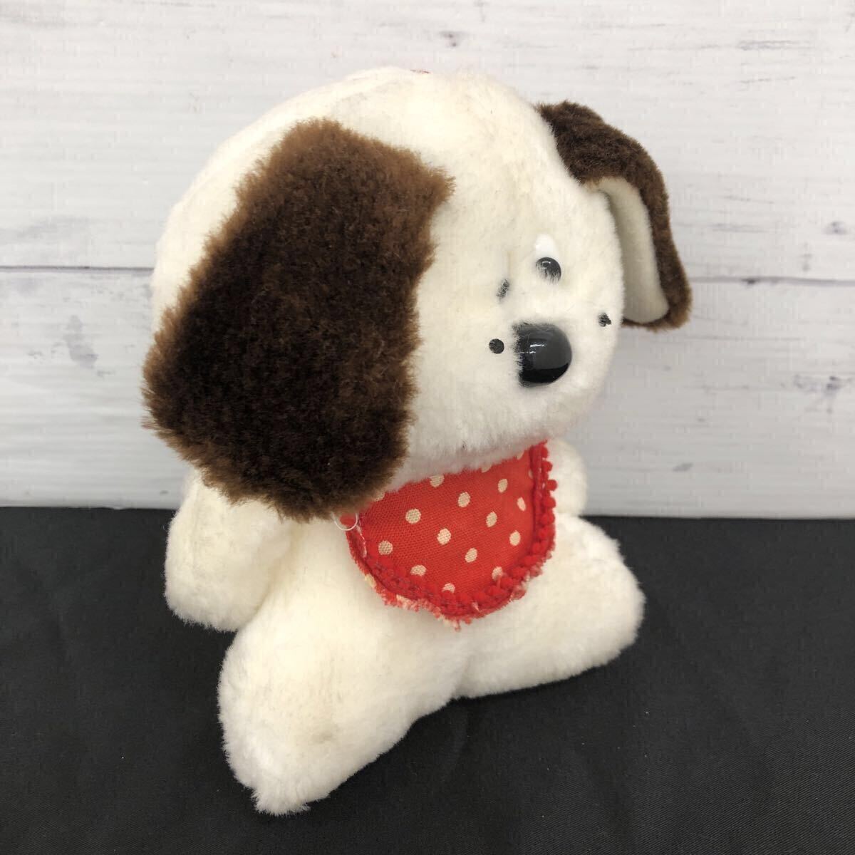 【中古】犬のぬいぐるみ 幼犬 垂れ耳 白×茶 よだれかけ カワイイ ぶさ犬 レトロ ノンキャラクター オリジナルキャラクター