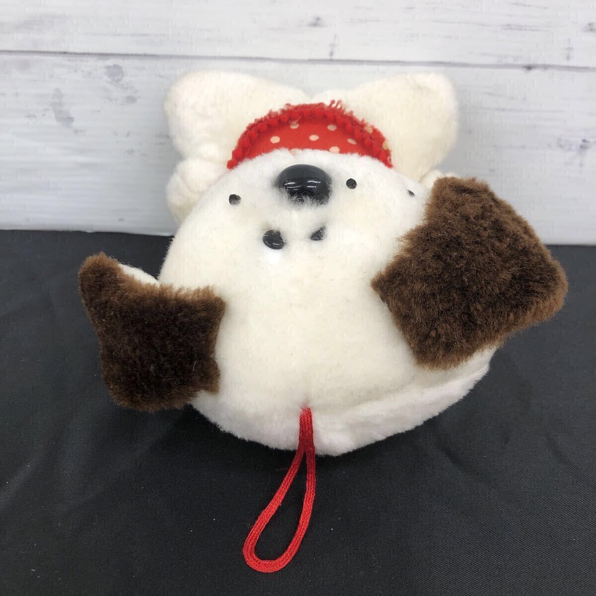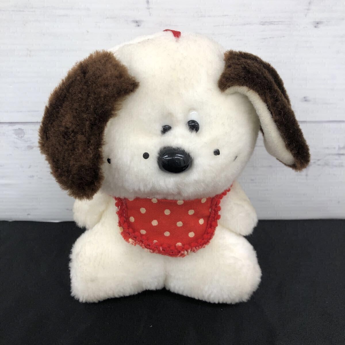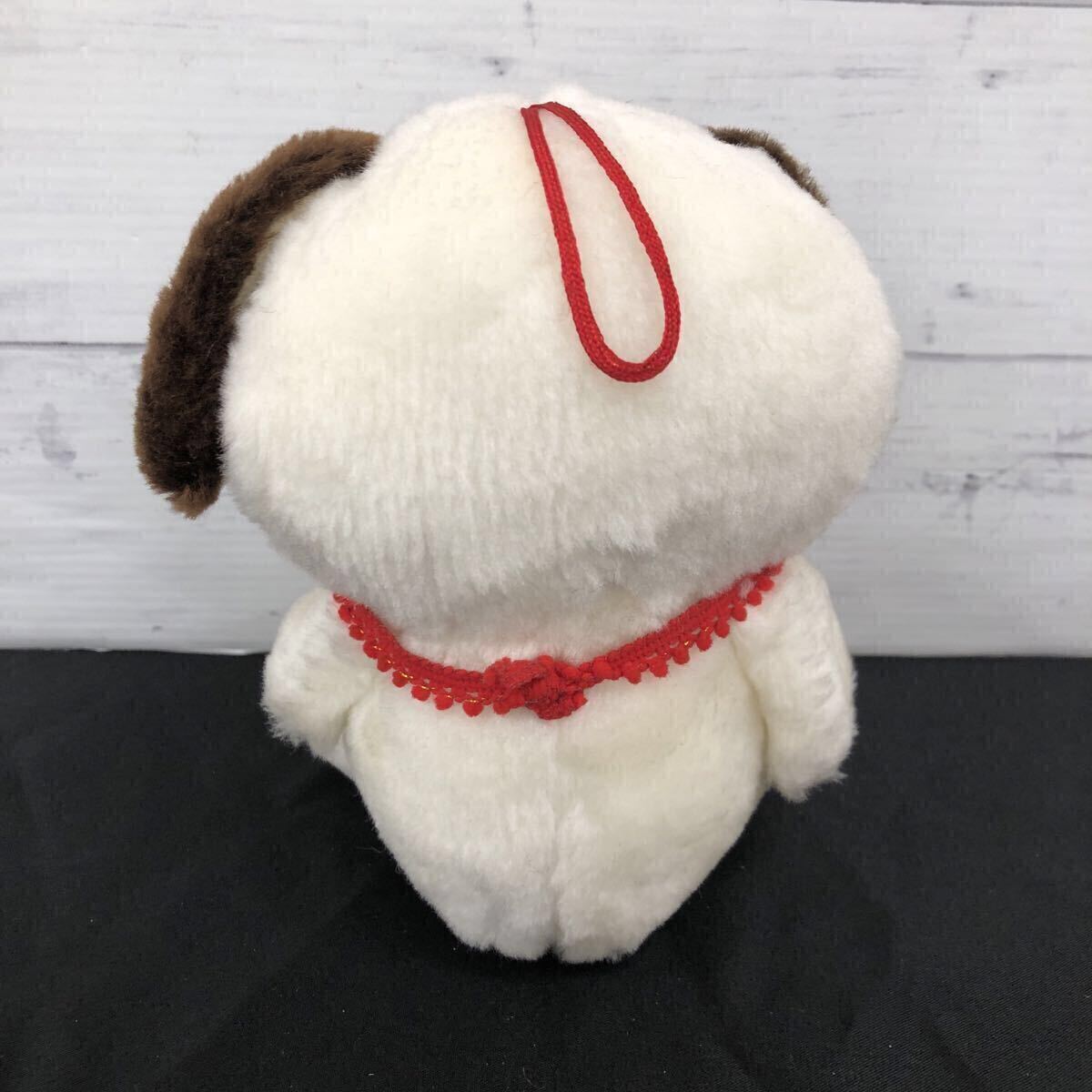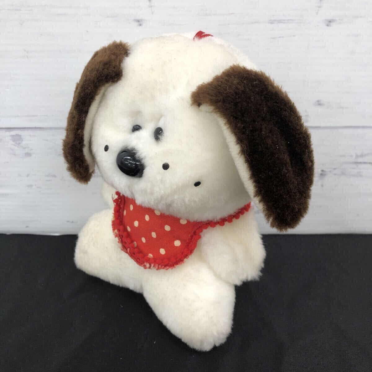 【中古】犬のぬいぐるみ 幼犬 垂れ耳 白×茶 よだれかけ カワイイ ぶさ犬 レトロ ノンキャラクター オリジナルキャラクター