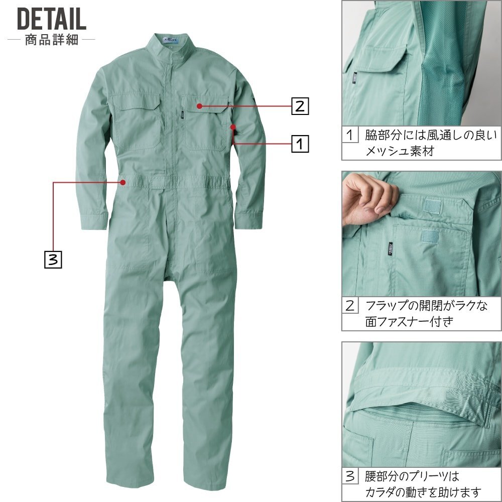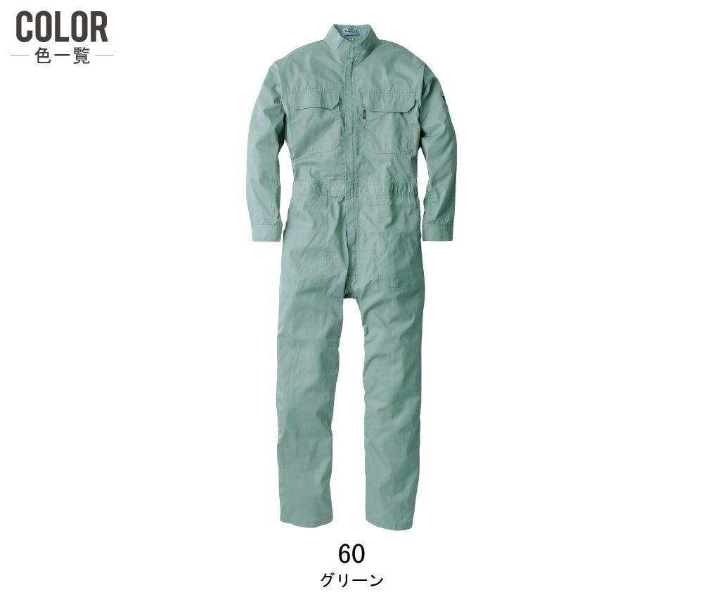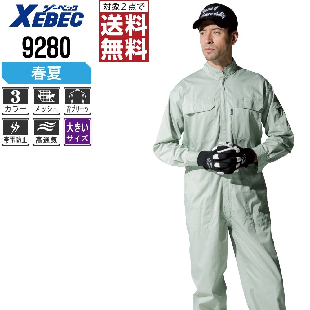 ジーベック 春夏 長袖 つなぎ JIS規格 帯電防止 防縮防シワ加工 9280 色:グリーン サイズ:4L ★ 対象2点 送料無料 ★