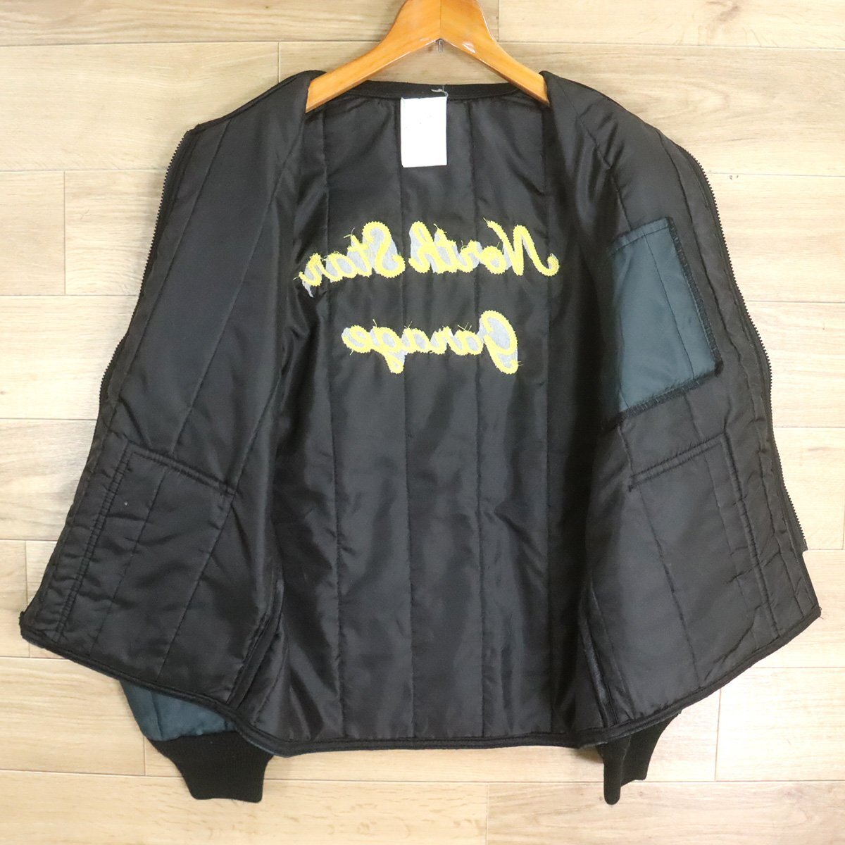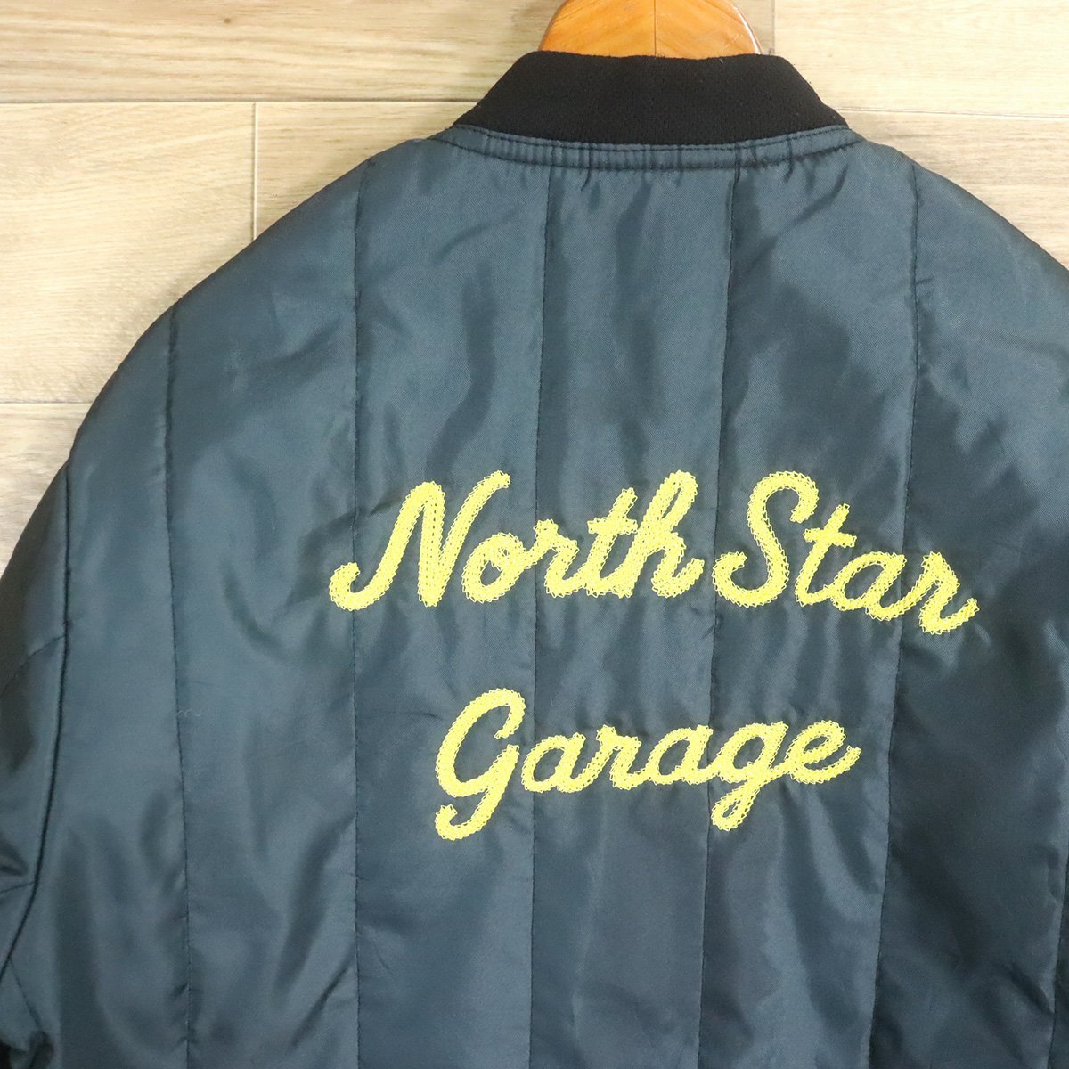 I7T/D12.1-2 アメリカ古着 中綿 キルティングジャケット M位 バック刺繍 チェーンステッチ North Star Garage ボンバージャケット