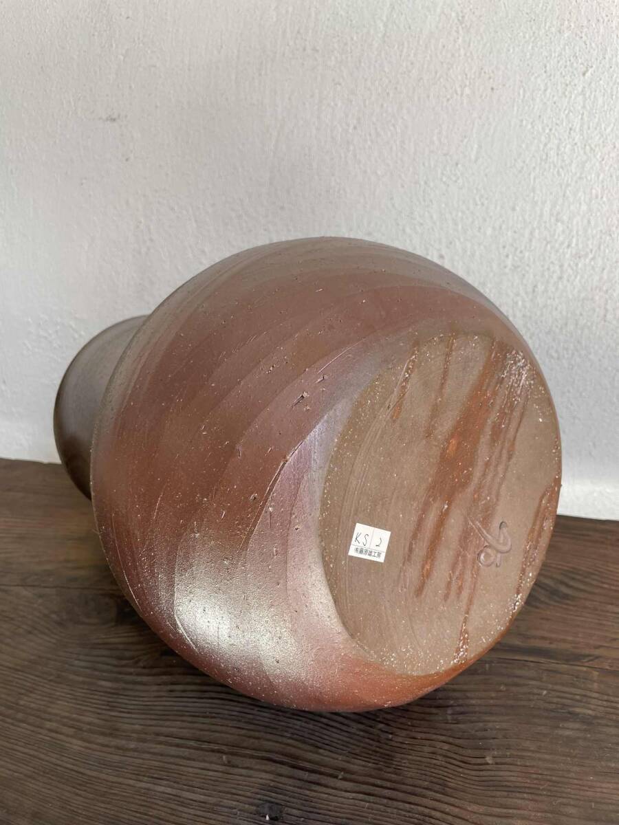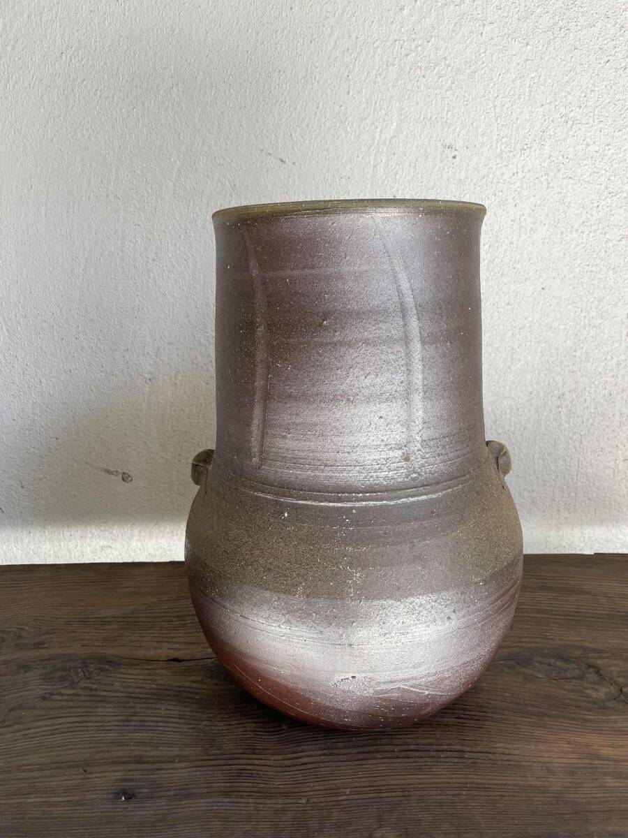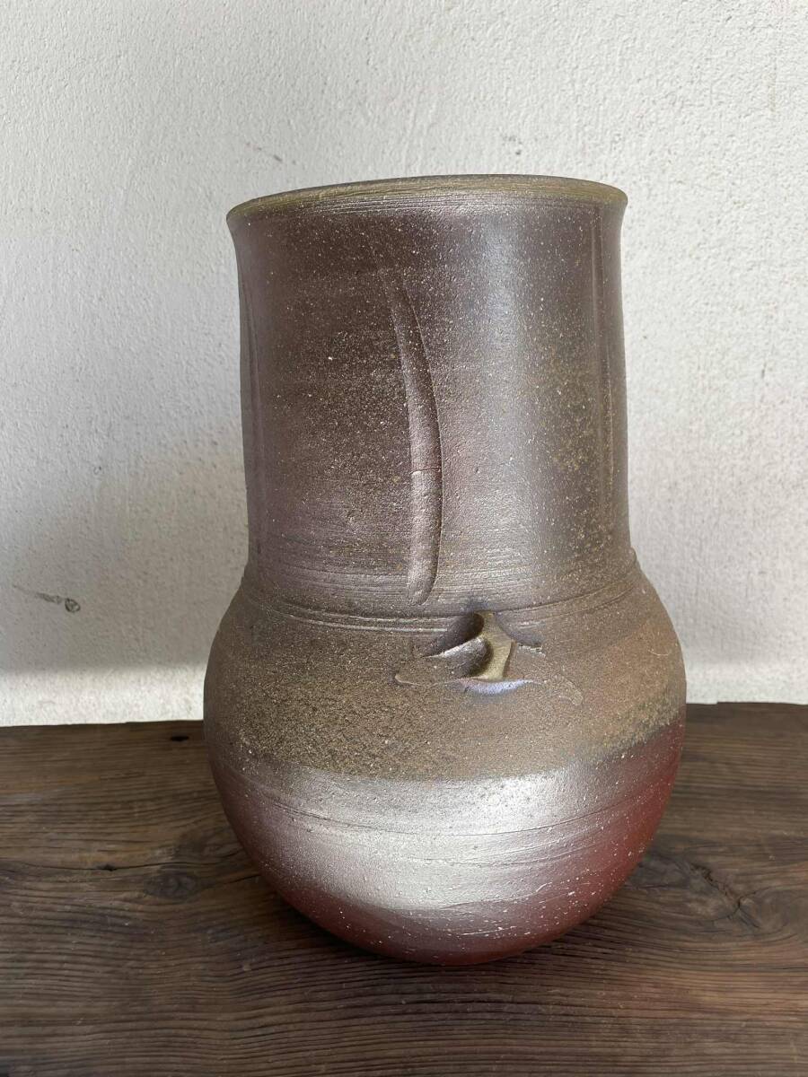 +--- 藤原和 擂座線文花器 備前 焼締---+