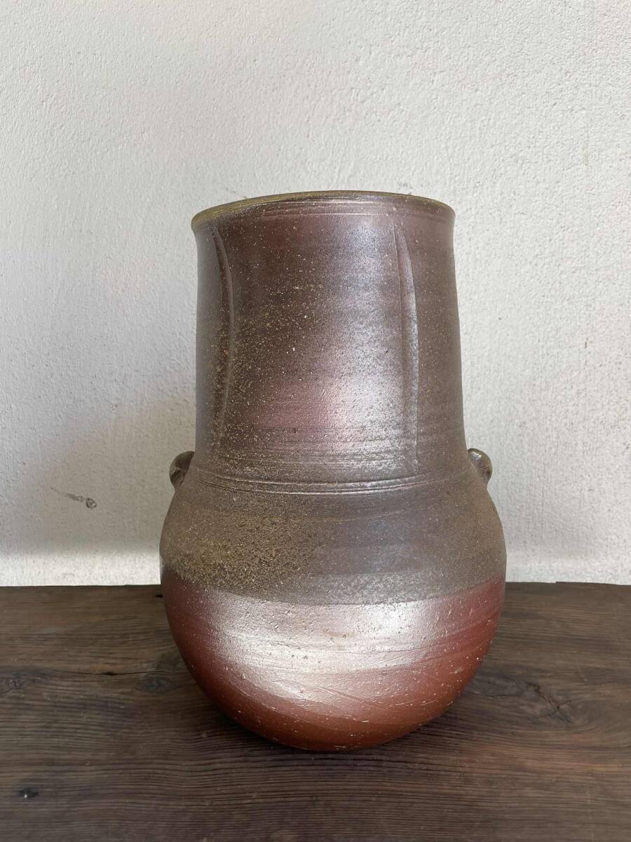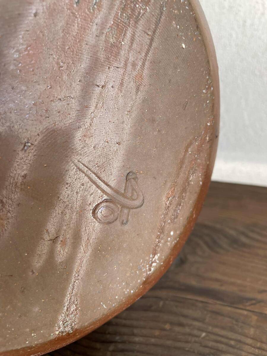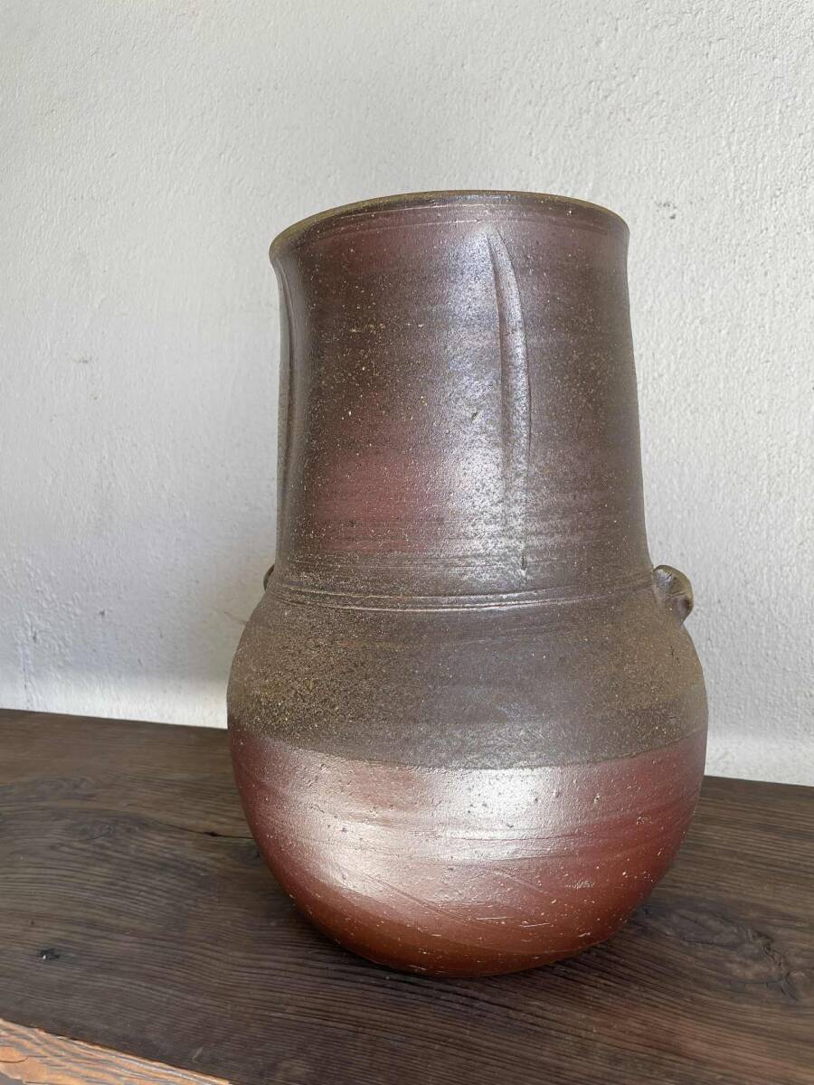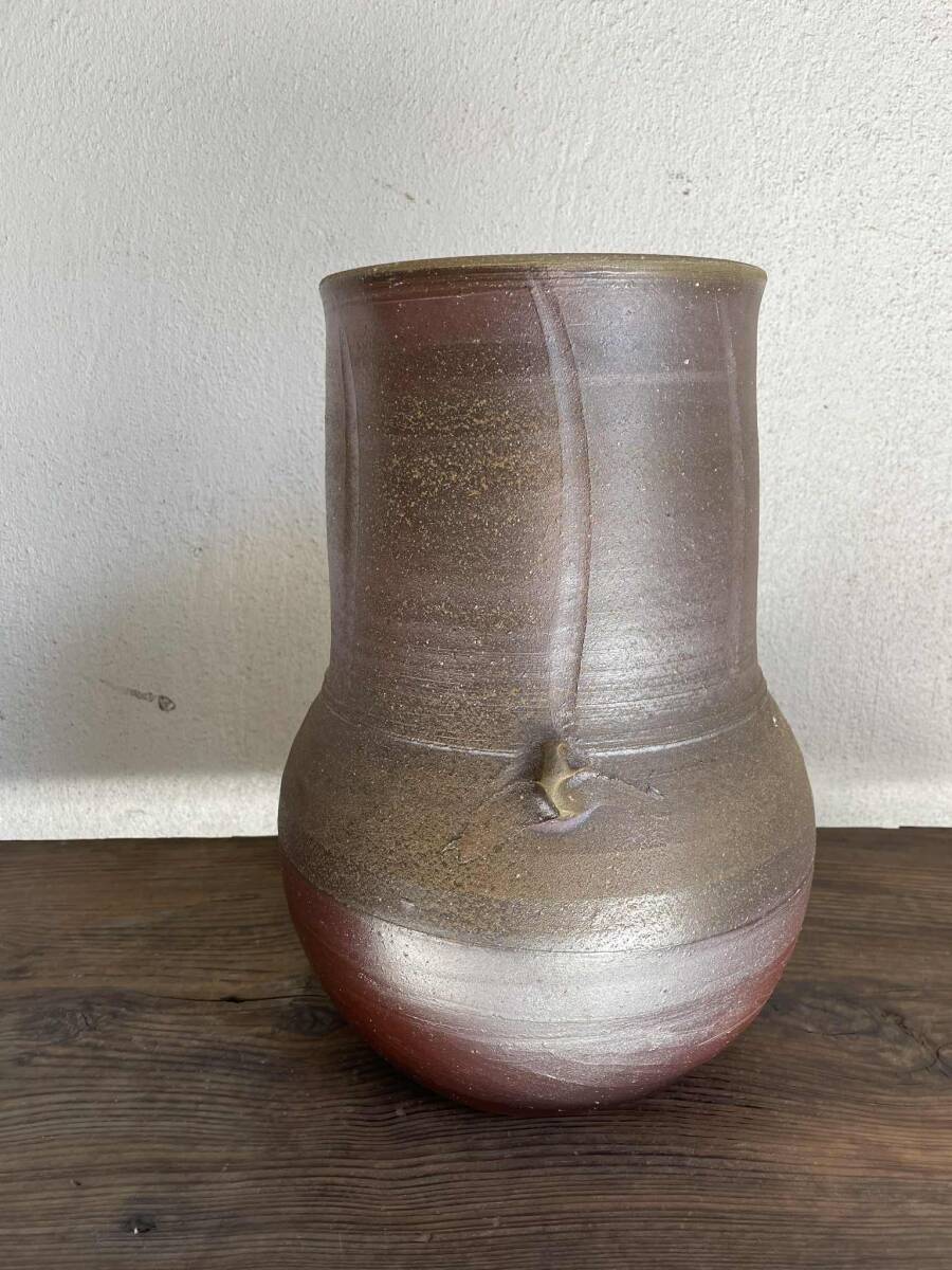 +--- 藤原和 擂座線文花器 備前 焼締---+