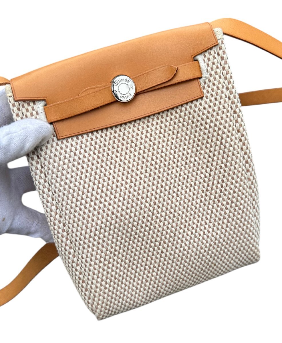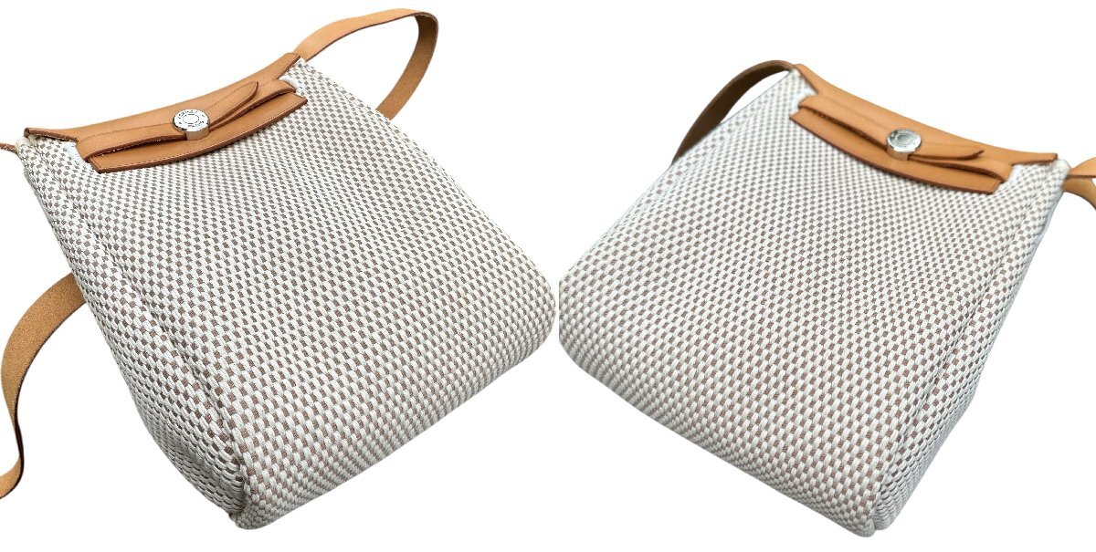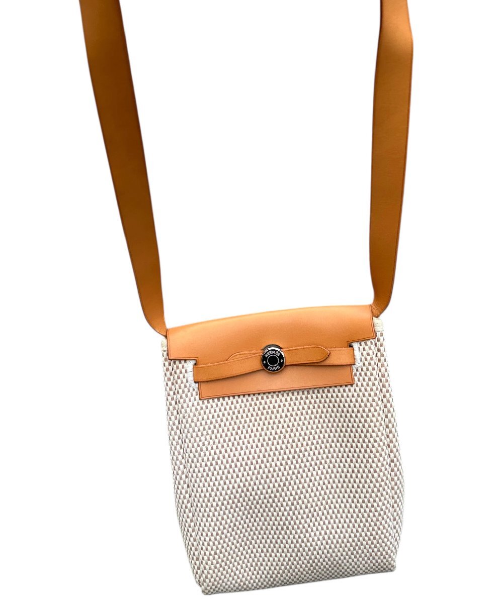 超美品◆本物◆エルメスHERMESエールラインエールバッグTPMトワルアッシュポシェットショルダーバッグ斜め掛けベージュ×ブラウン□H