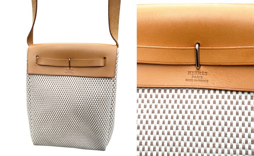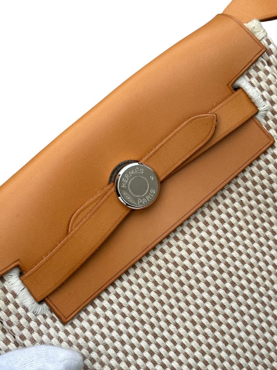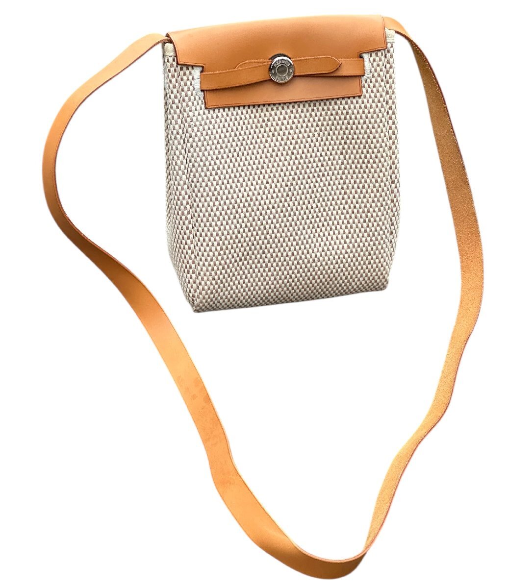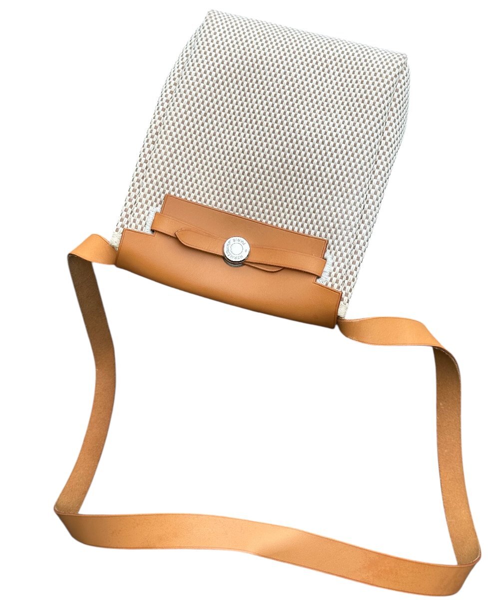 超美品◆本物◆エルメスHERMESエールラインエールバッグTPMトワルアッシュポシェットショルダーバッグ斜め掛けベージュ×ブラウン□H