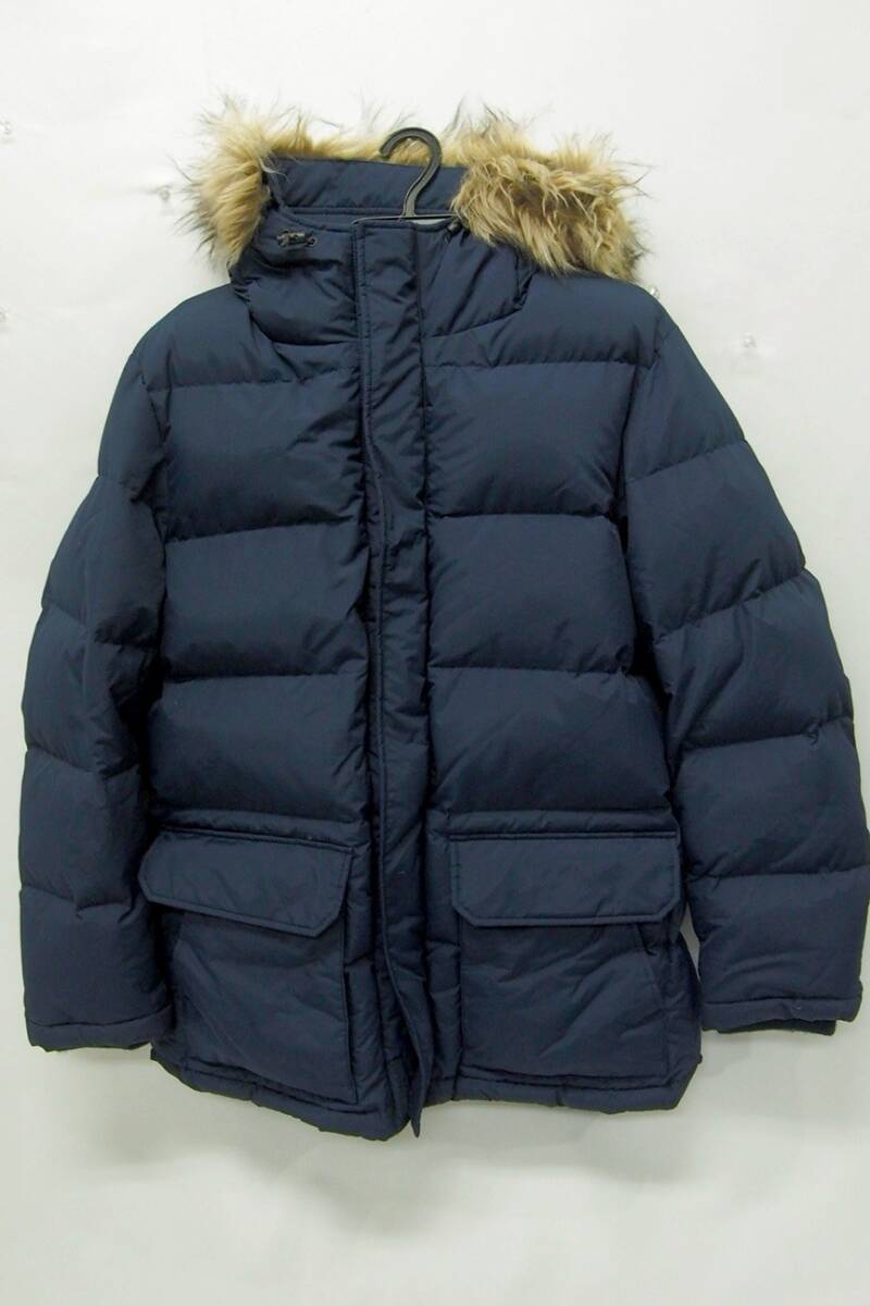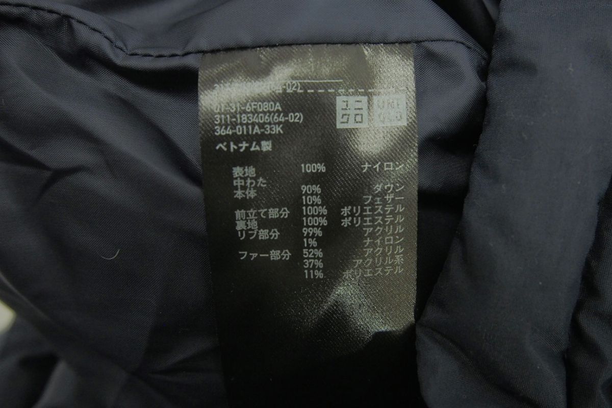 r2_5679k 美品 UNIQLO ユニクロ 肉厚 ファー着脱可 ダウンジャケット ネイビー/男性用/サイズXL/中箱
