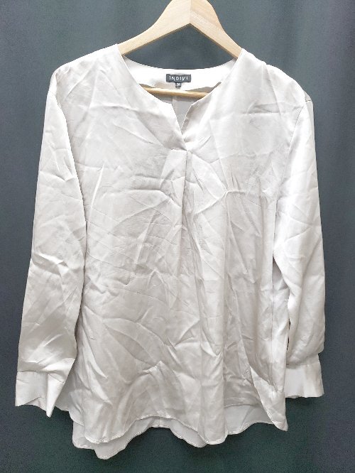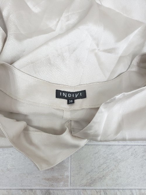 ◇ INDIVI インディヴィ スキッパー サテン調 長袖 ブラウス カットソー サイズ38 シャンパンゴールド系 レディース P