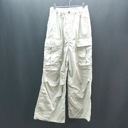 ◇ JaVa ジャバ ウエストゴム 腰ひも ベルトループ ビッグポケット ワイドパンツ サイズS ライトグレー レディース E